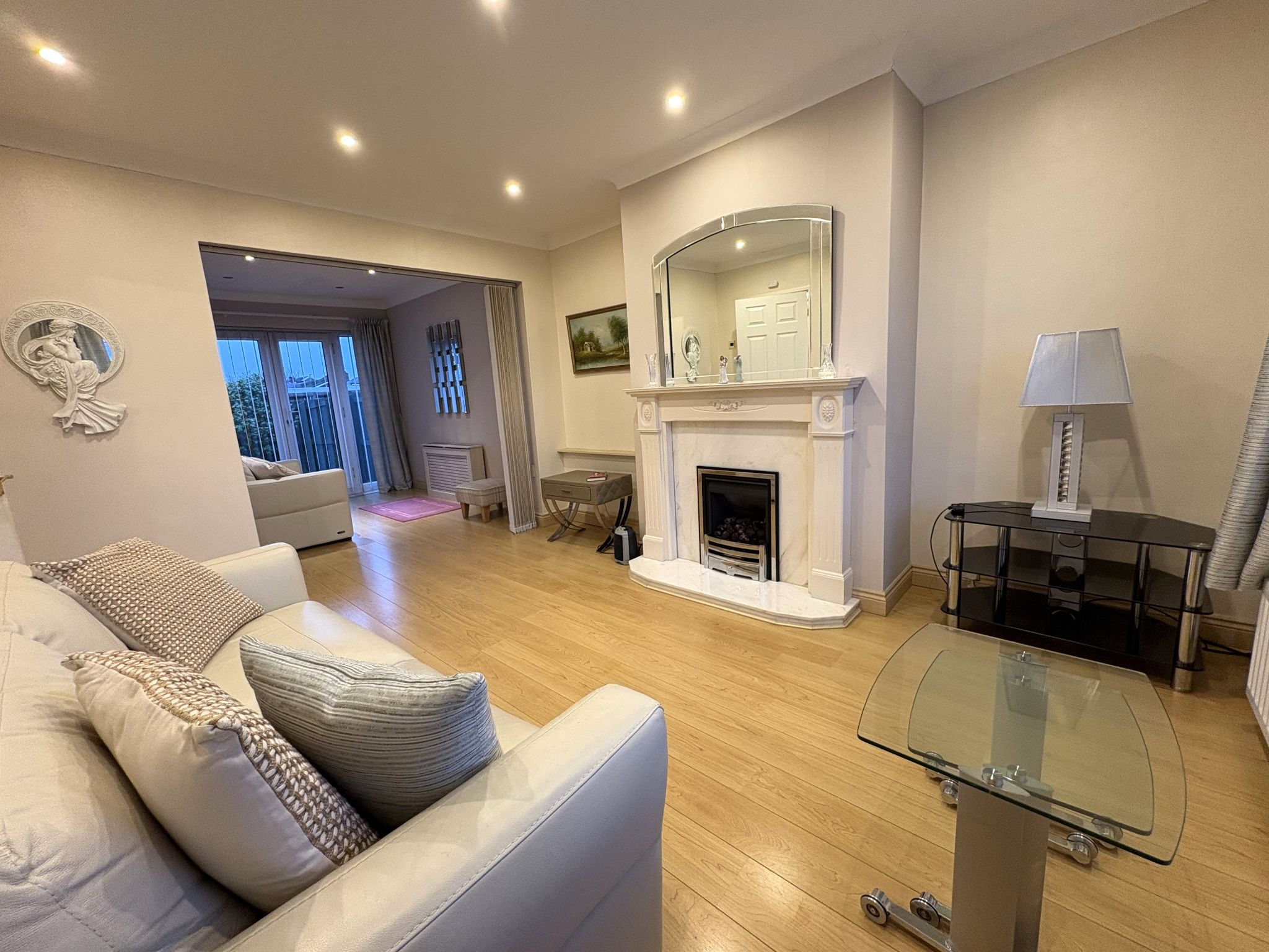 Lounge.17'1 x 11'3 (5.20m x 3.42m) Double glazed window to front, laminate flooring, fire surround with gas fire, spot lights to ceiling, TV point and coving.