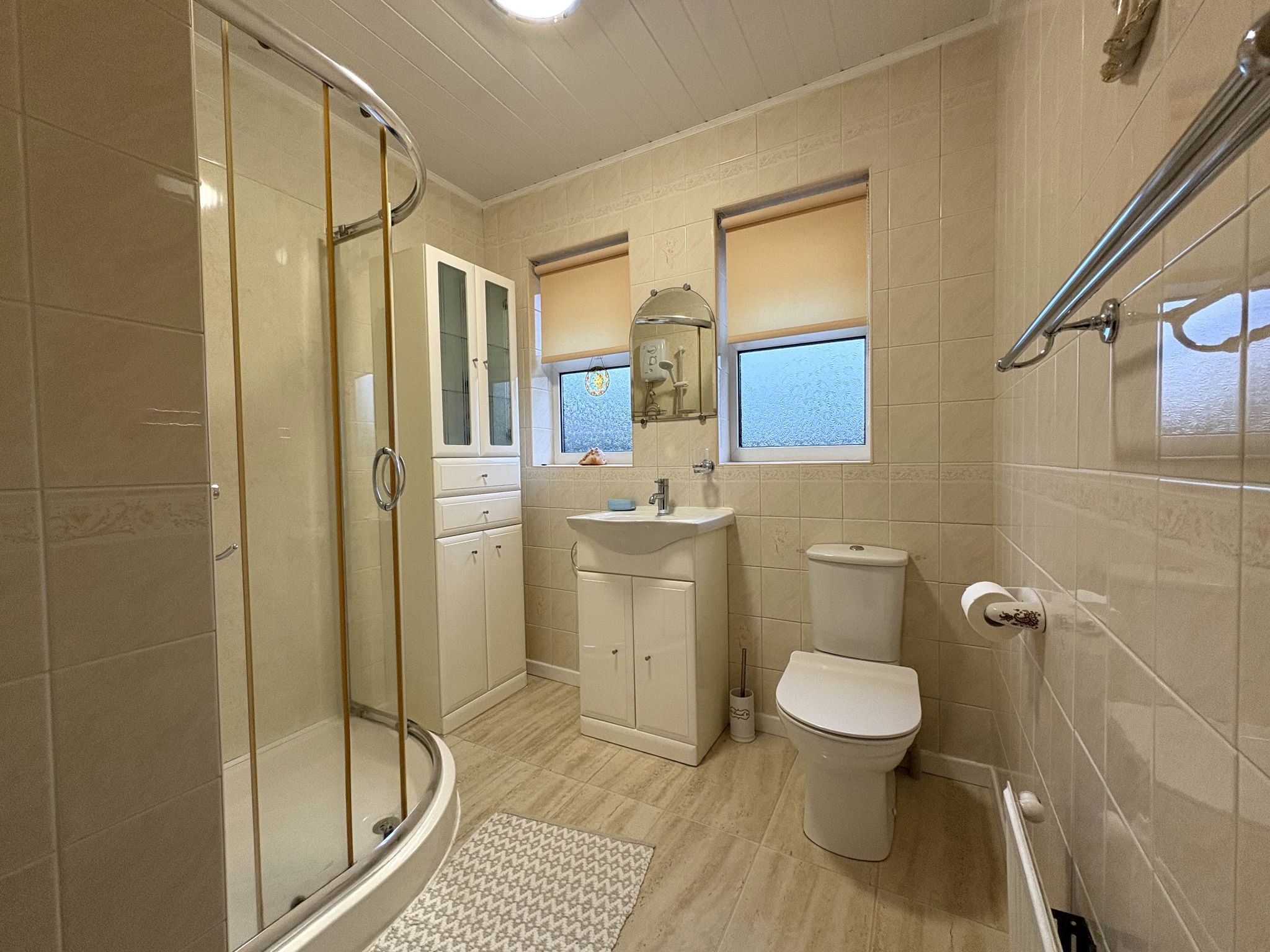 Bathroom. 7' x 5'2 (2.12m x 1.57m). 2 x double glazed windows to rear, shower enclosure, vanity sink unit, WC, fully tiled walls, radiator and tiled flooring.