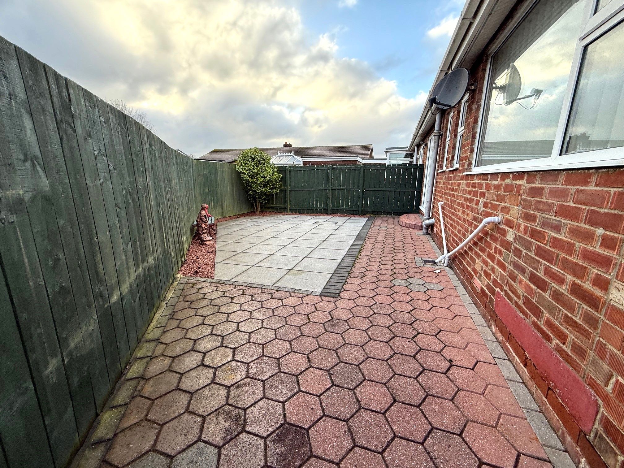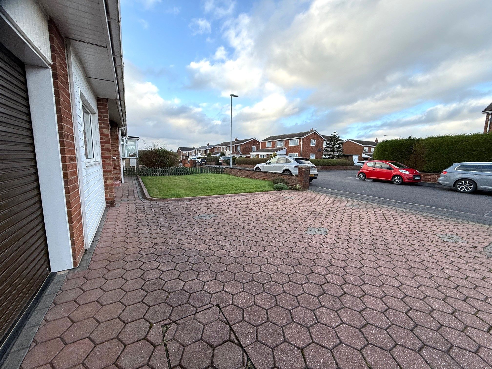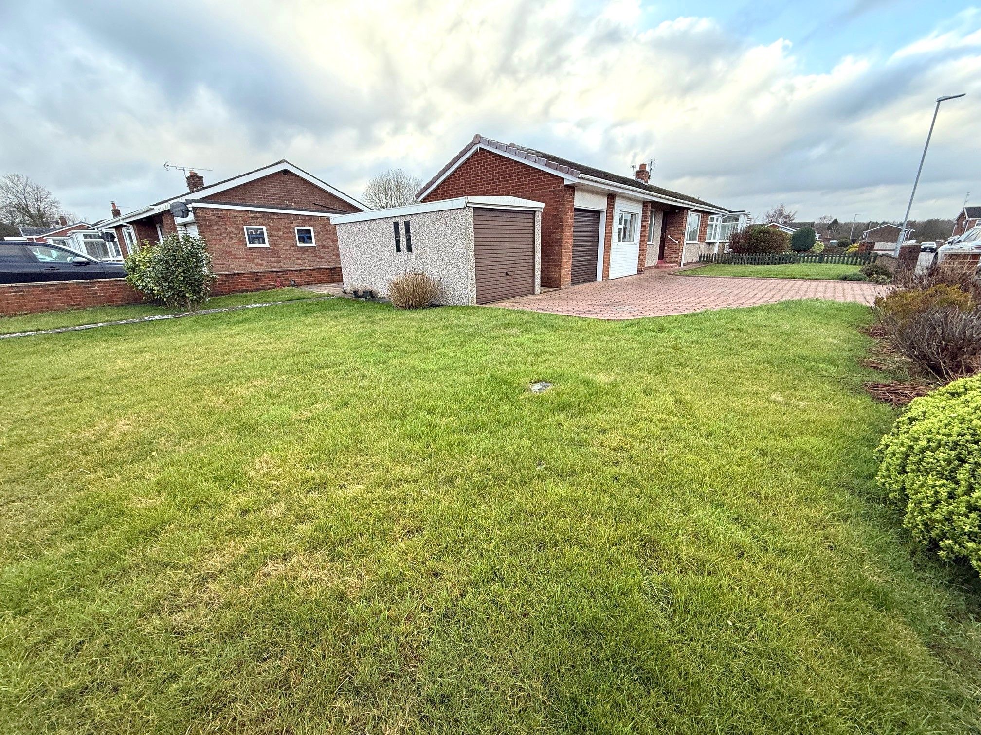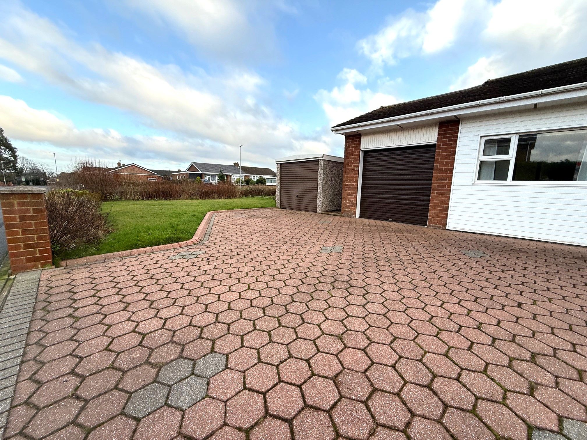 1 of the garages can be accessed via the utility room. Lights, power and an electric garage door are available along with extra storage to the bungalows attic. A further detached concrete garage sits within this generous corner plot. Ample parking for around 4 cars is via the paved driveway and a good sized lawn is to the side. The plot is a considerable size with a fine blend of lawns and paving to the rear garden.