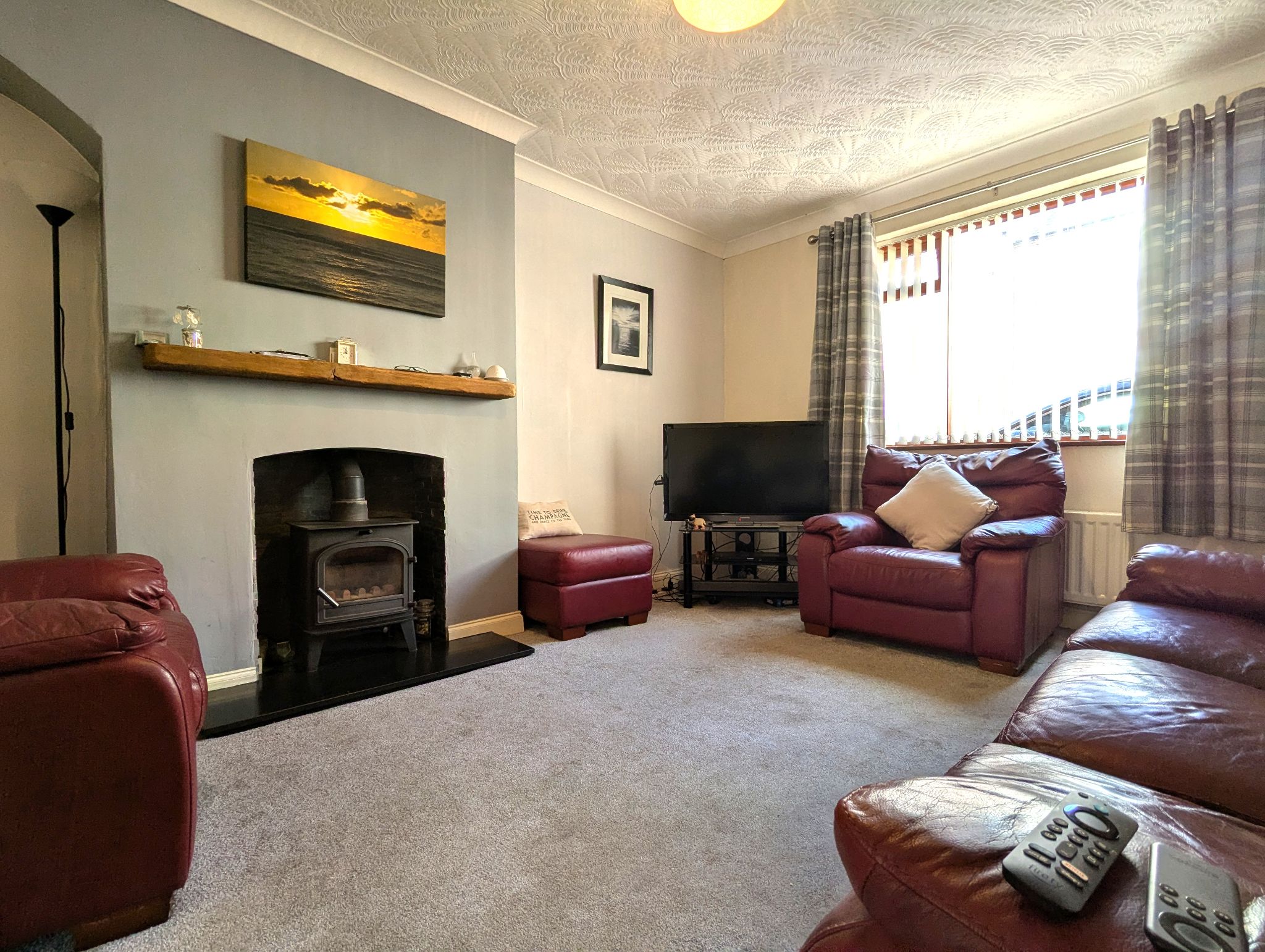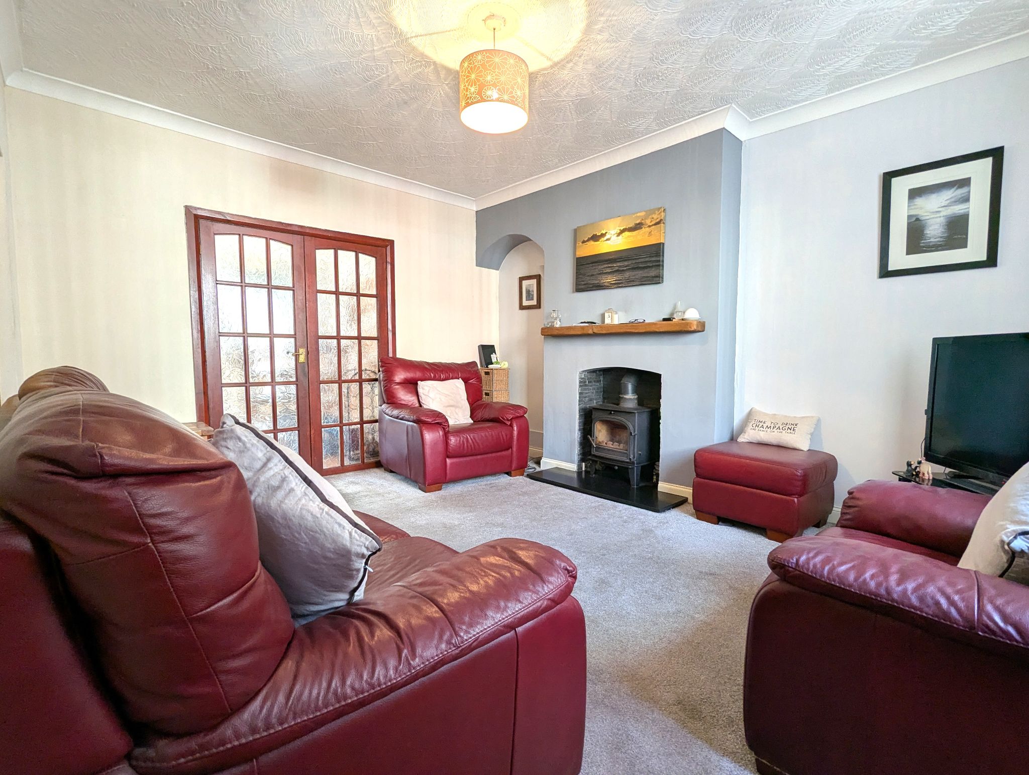 Lounge - 11'6 x 14'10 (3.50m x 4.51m) - Spacious carpeted lounge with a front-facing hardwood double glazed window. Multi-fuel burner, wall mounted radiator and access to the kitchen/diner via a pair of hardwood French doors.