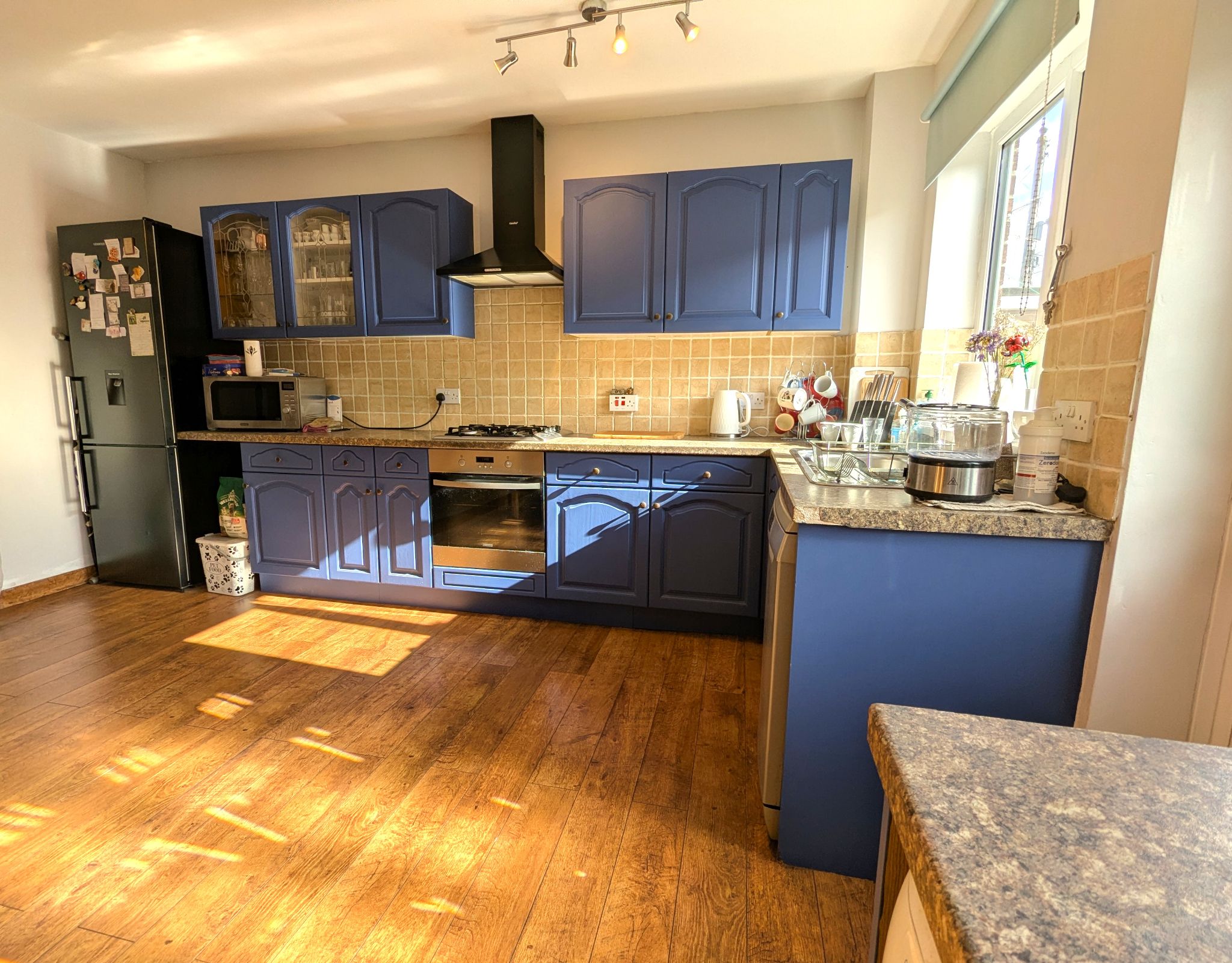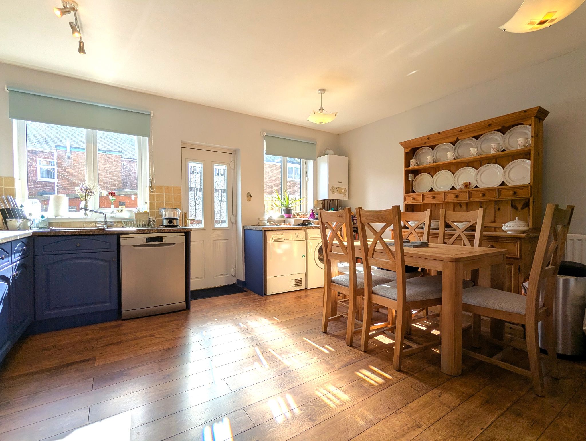 Kitchen/Diner - 16'1 x 14'10 (4.91m x 4.51m) - Wood flooring throughout. Spacious kitchen/diner with access to a range base and wall fitted units with work surfaces. Integrated electric oven with gas hob and overhead extractor fan. Space for a washing machine and fridge/freezer. Wall mounted combination boiler. Stainless steel sink with mixer tap. Composite door to the rear yard between 2 rear-facing UPVC double glazed windows. Wall mounted radiator.