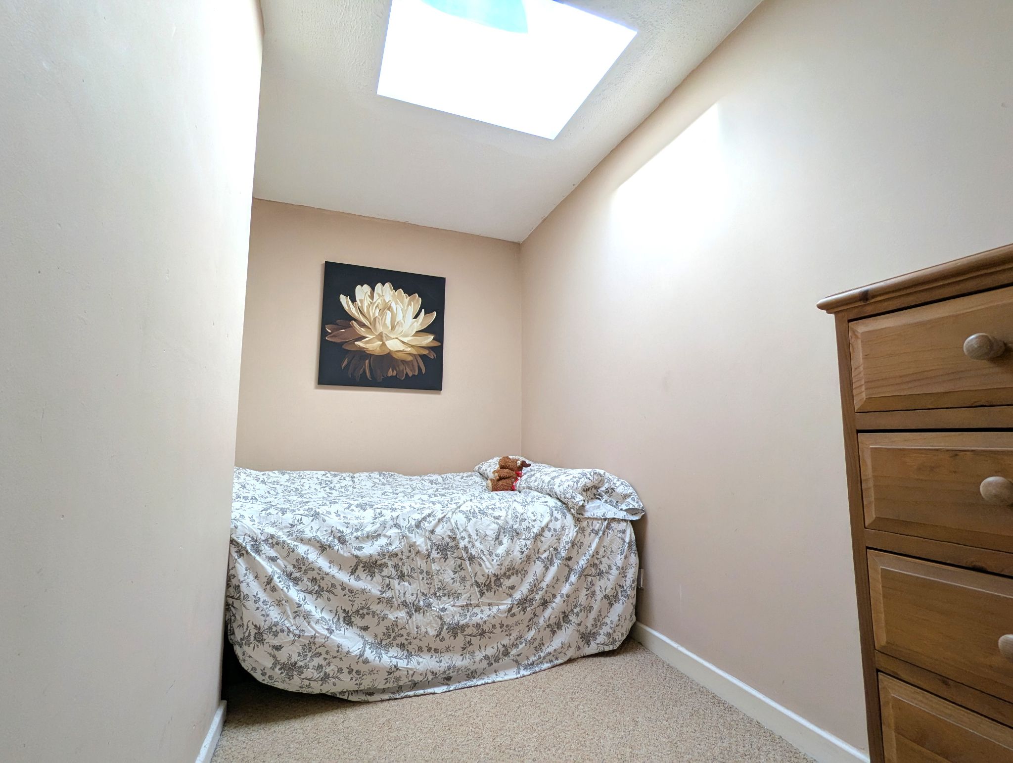 Bedroom Two - 6'3 x 11'8 (1.91m x 3.56m) - Carpeted bedroom with skylight and wall mounted radiator.