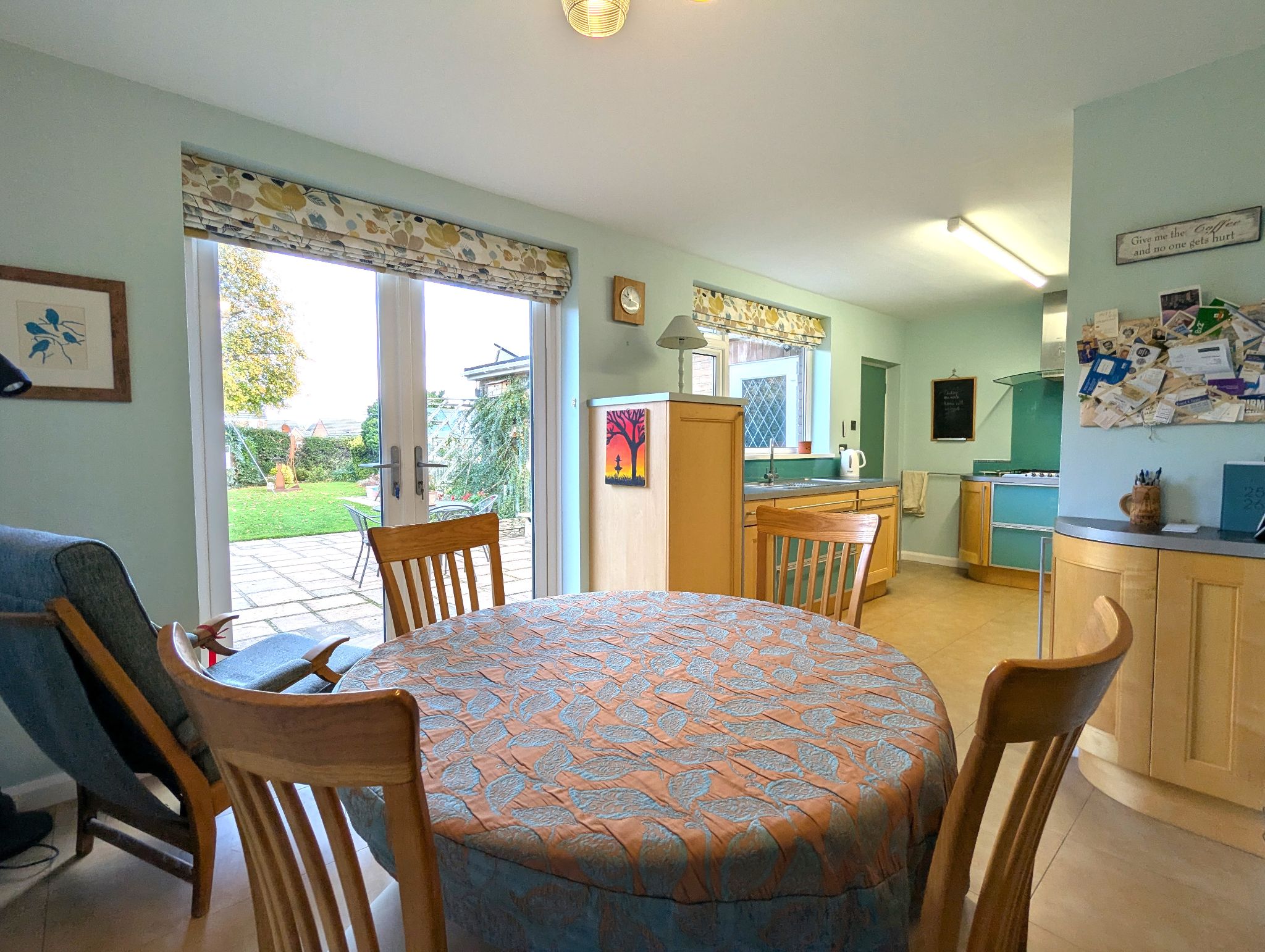 Dining Room 16’ x 12’8 (4.88m x 3.93m) A spacious dining room with solid Oak flooring, large side-facing UPVC double glazed window and wall mounted radiator.