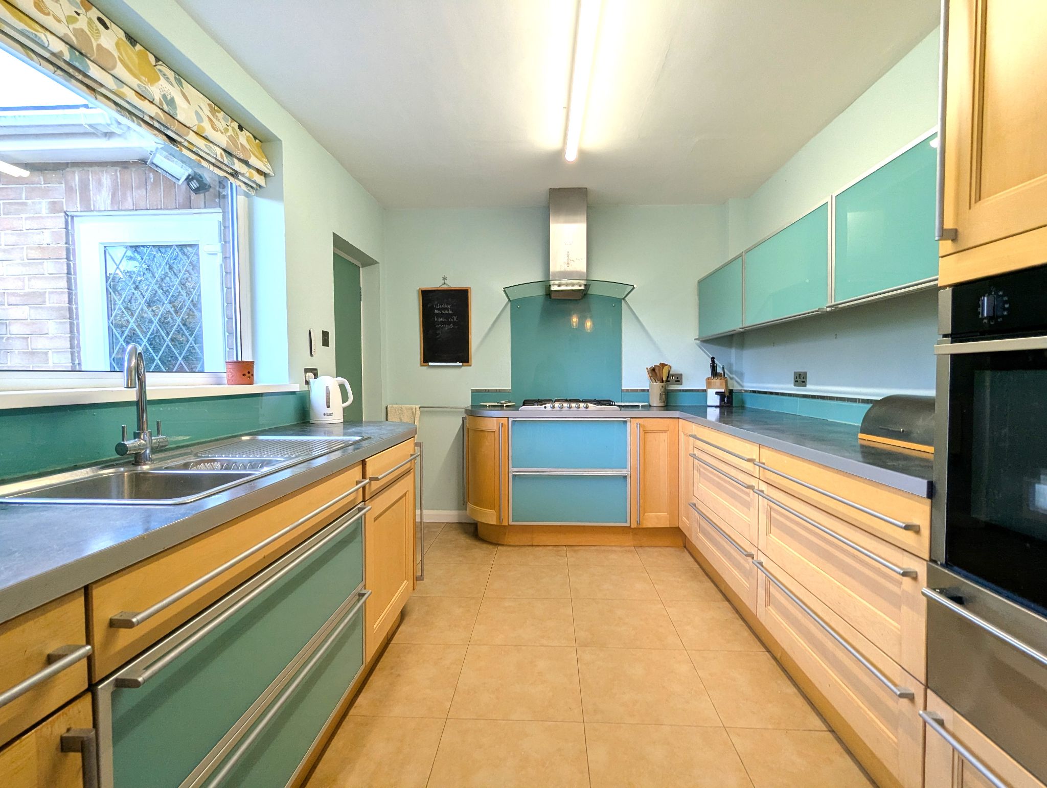 Kitchen/ Breakfast Area 8’8 opening to 12’9 x 21’7 (2.70m opening to 3.94m x 6.64m) An amazingly spacious kitchen with breakfast area perfect for looking out onto the rear garden via the double French UPVC doors. With tiled flooring throughout, the kitchen area has an ample range of contrasting fitted base and wall units and work surfaces. There is an integrated electric oven and gas hob with overhead extractor, dishwasher and fridge. Stainless steel one-and-a-half sink with mixer tap below a rear-facing UPVC double glazed window. There is an access point in the far corner of the kitchen to a rear passage connecting to the garage, utility cupboard with plumbing for a washing machine and UPVC door to the rear garden. The breakfast area also boasts deep built-in cupboards ideal for ample storage. Wall mounted radiator.