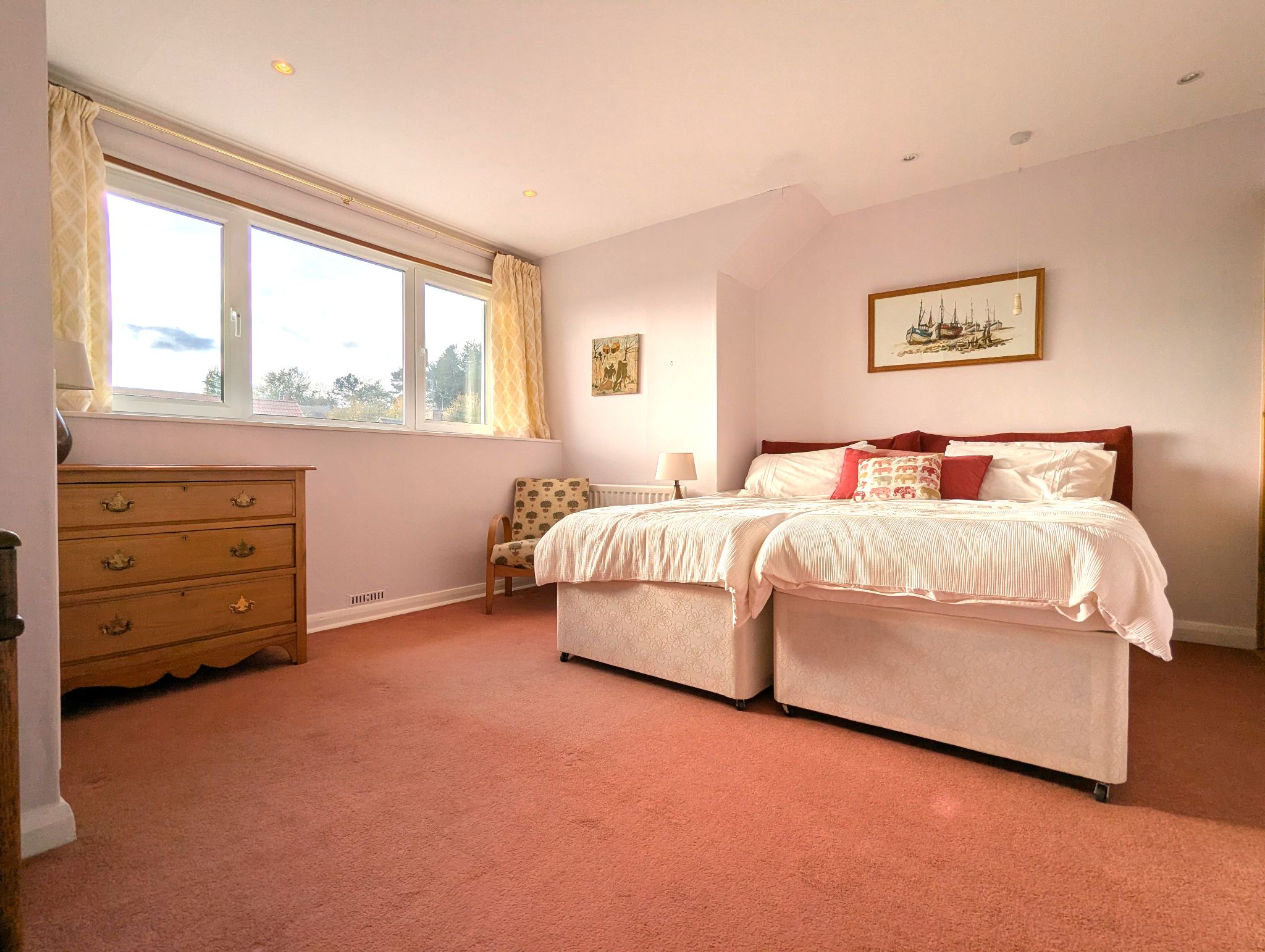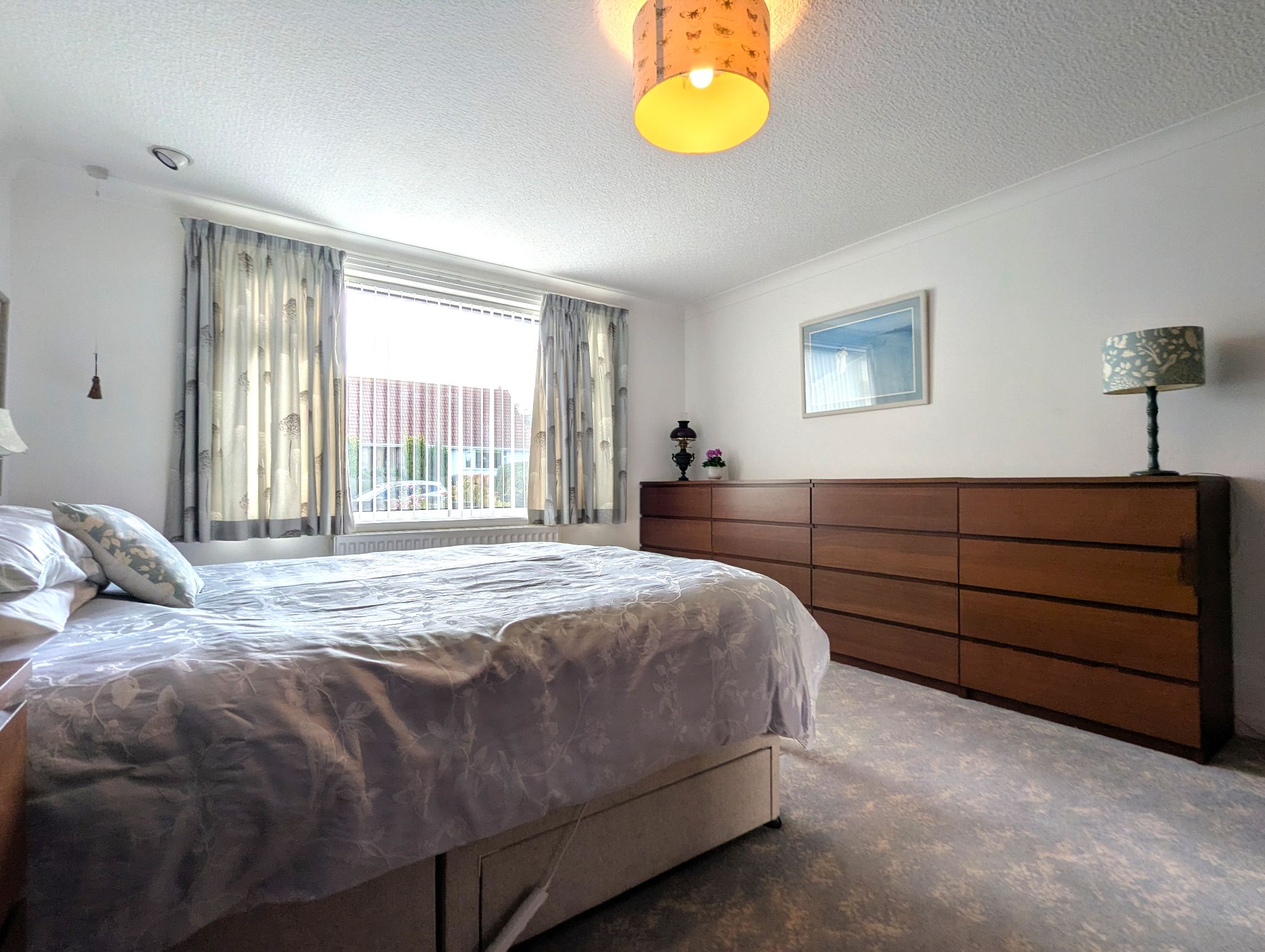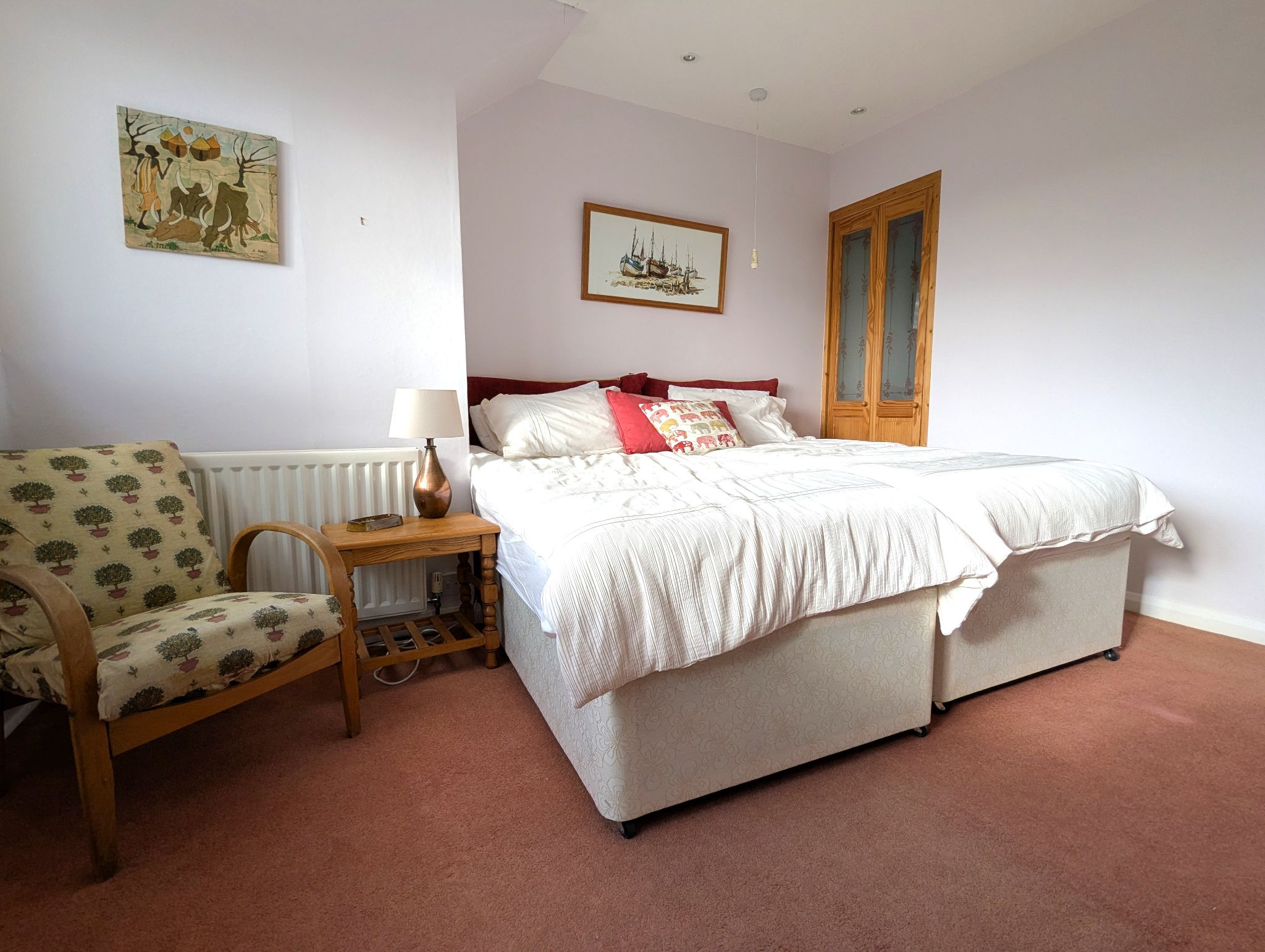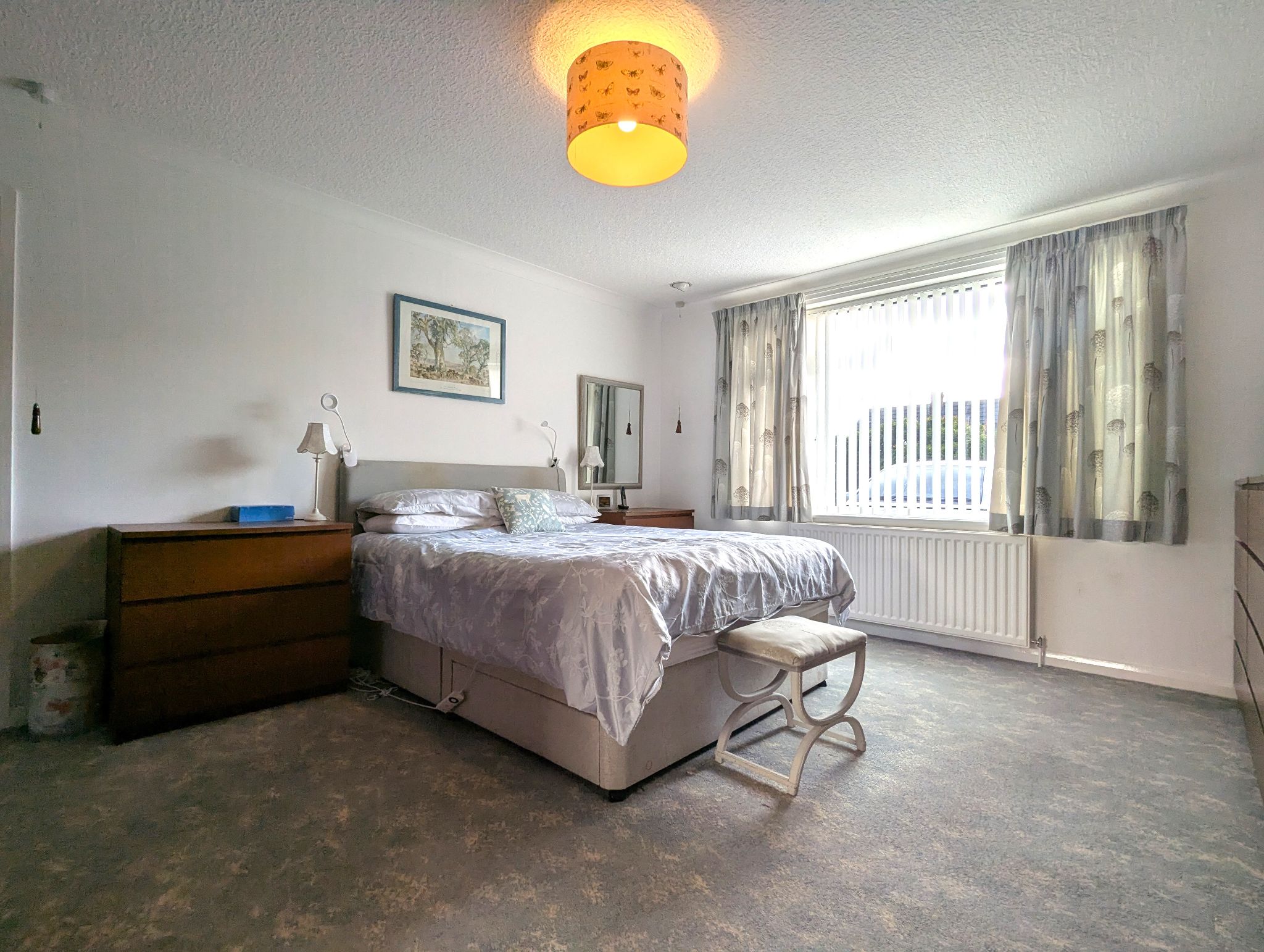 Bedroom Three 12’ x 12’8 (3.68m x 3.93) The first of 2 spacious first floor bedrooms with carpeted flooring, a front-facing UPVC double glazed dormer window, built-in wardrobe and wall mounted radiator.