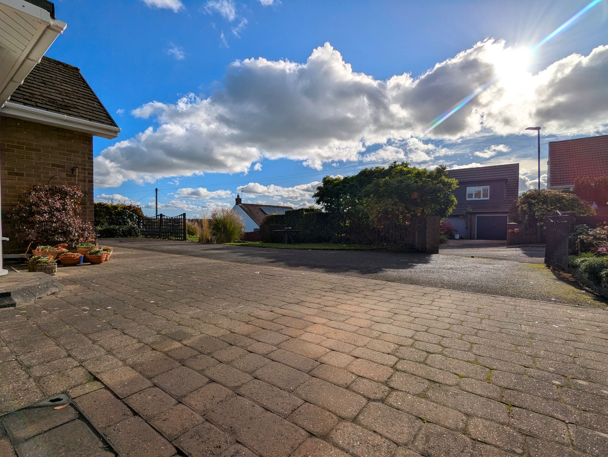 Exterior A generous and stunningly presented flat plot with an elevated position, where to the front is a wraparound drive leading up to the garage, able to accommodate numerous vehicles and a beautifully presented front garden with amazing features. The larger and private garden to the rear plays host to large patio area and much larger lawned area with stunning decorative garden features, a green house, planting beds, shed with an outdoor tap and wood shed.