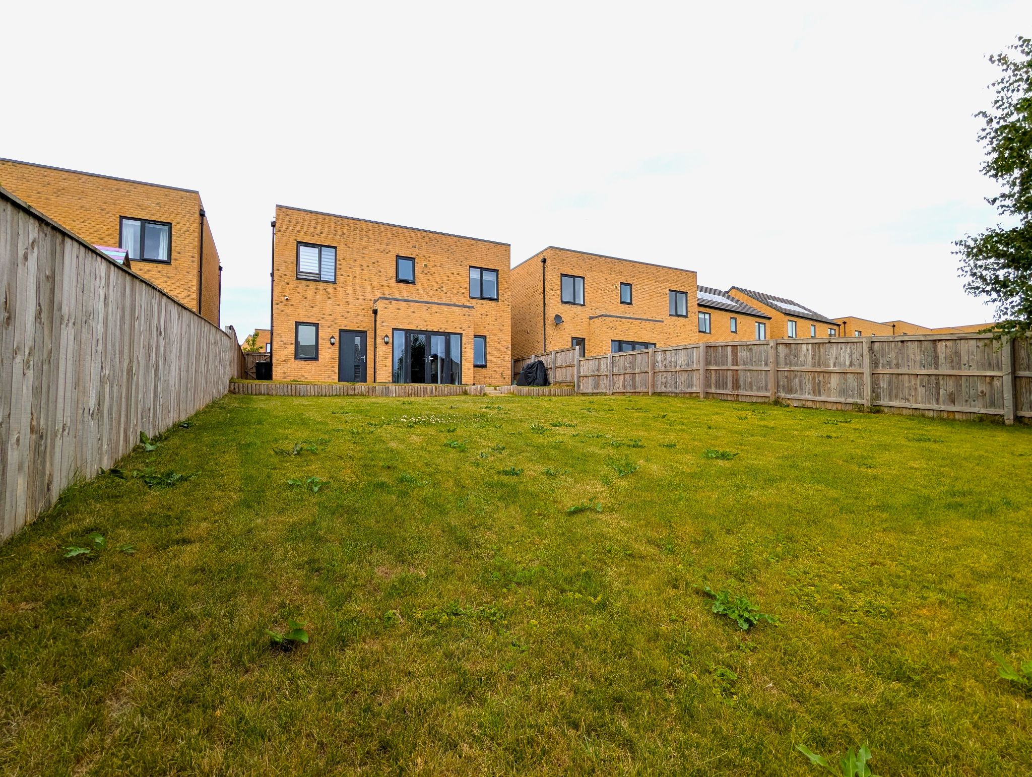 The front exterior boasts a garden with a tarmacked drive leading up to the garage as well as a gated side access to a vast south-facing garden. The house also benefits from solar panels as standard (details to be confirmed).