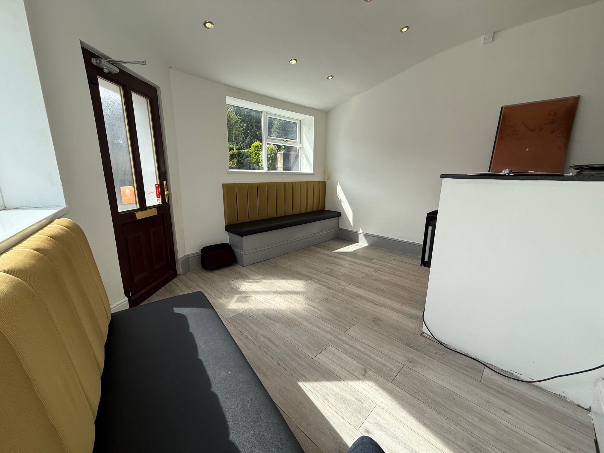 Waiting Room. 16'6 x 13'4 (5.04m x 4.05m) Double glazed windows to front and side, laminate flooring, counter.