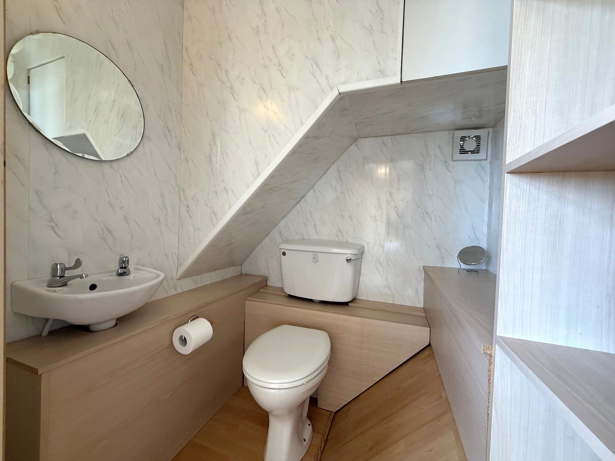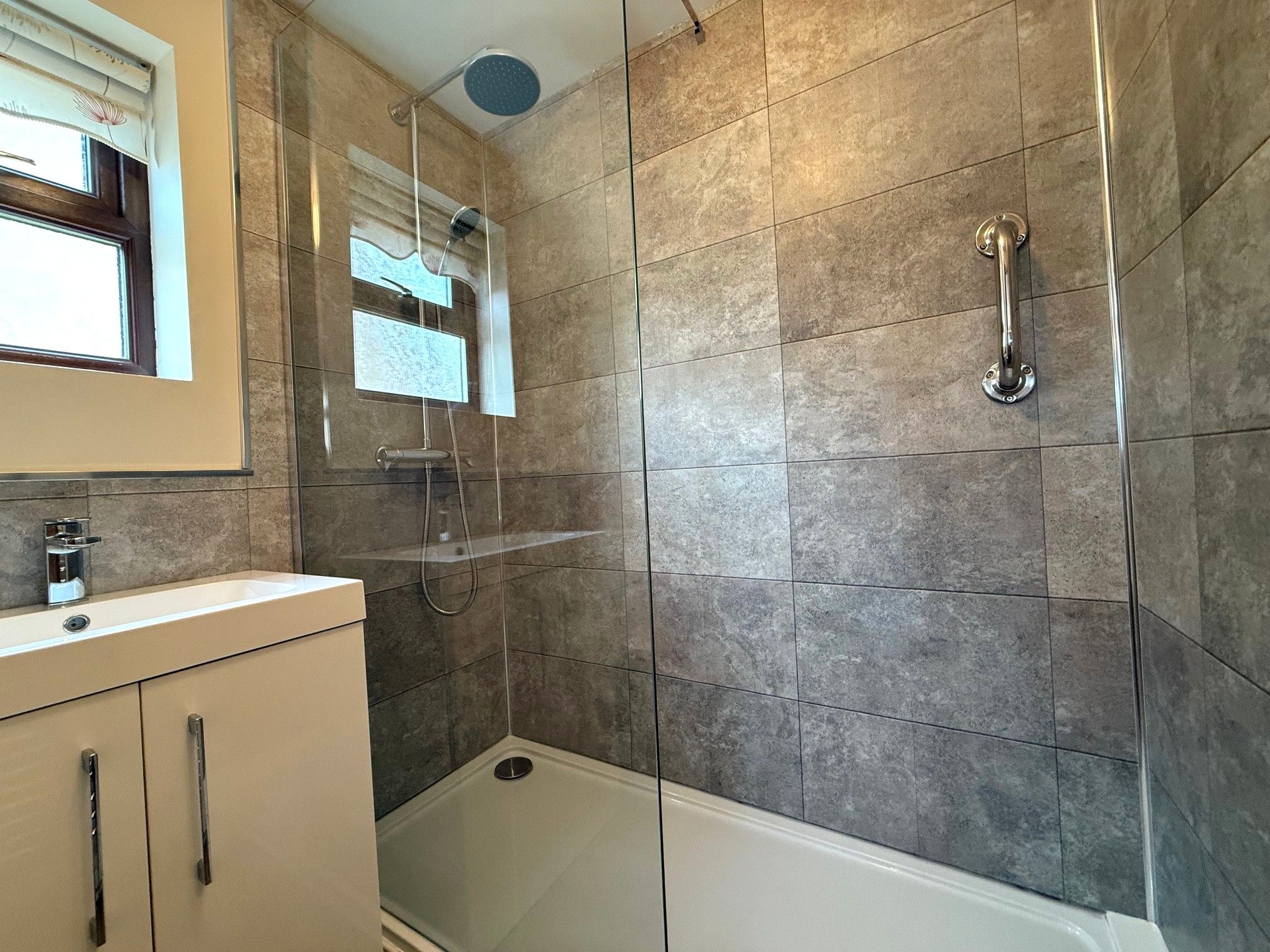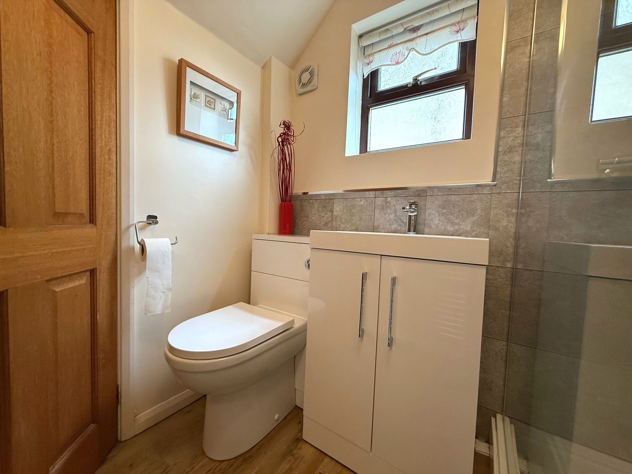Shower Room. 6'3 x 5' (1.91m x 1.52m) Double glazed window to side, shower enclosure with twin head shower, WC, hand basin, heated towel rail, extractor fan and decorative cladding to the walls.