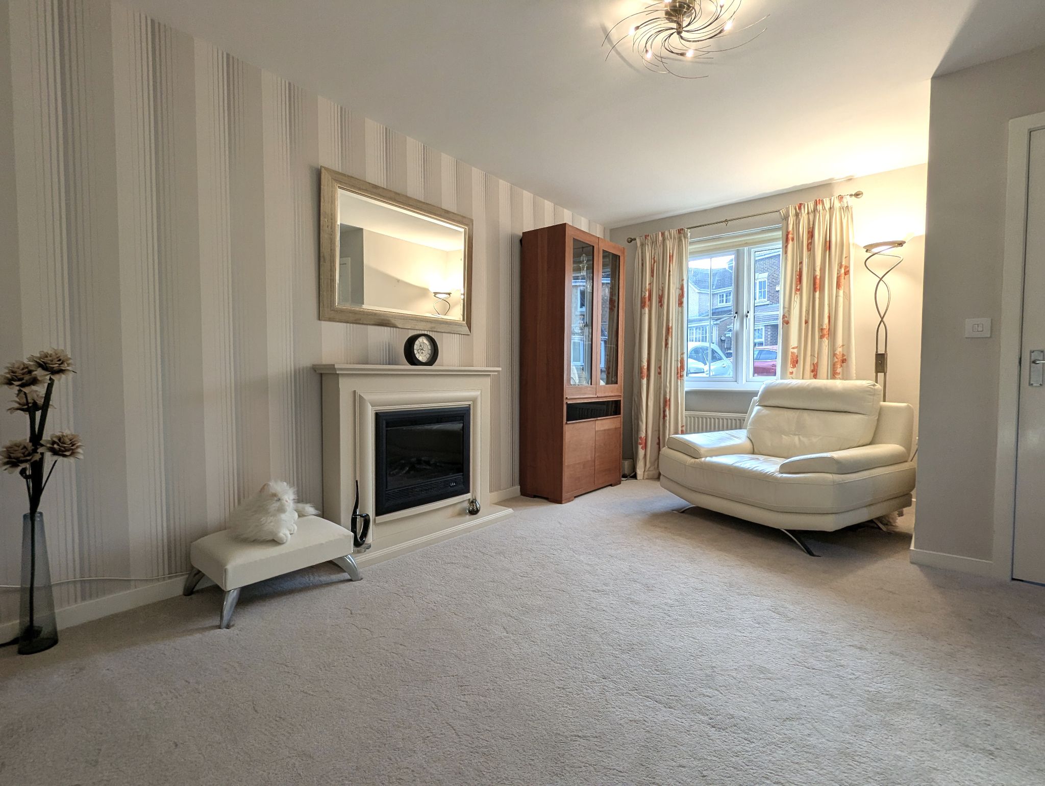 Lounge - 15'2 x 14'9 (4.66m x 4.56m) - Spacious carpeted lounge with a front-facing UPVC double glazed window, carpeted staircase to the first floor with a side-facing UPVC double glazed window. 2 wall mounted radiators, electric fireplace and access to the kitchen/diner towards the rear.