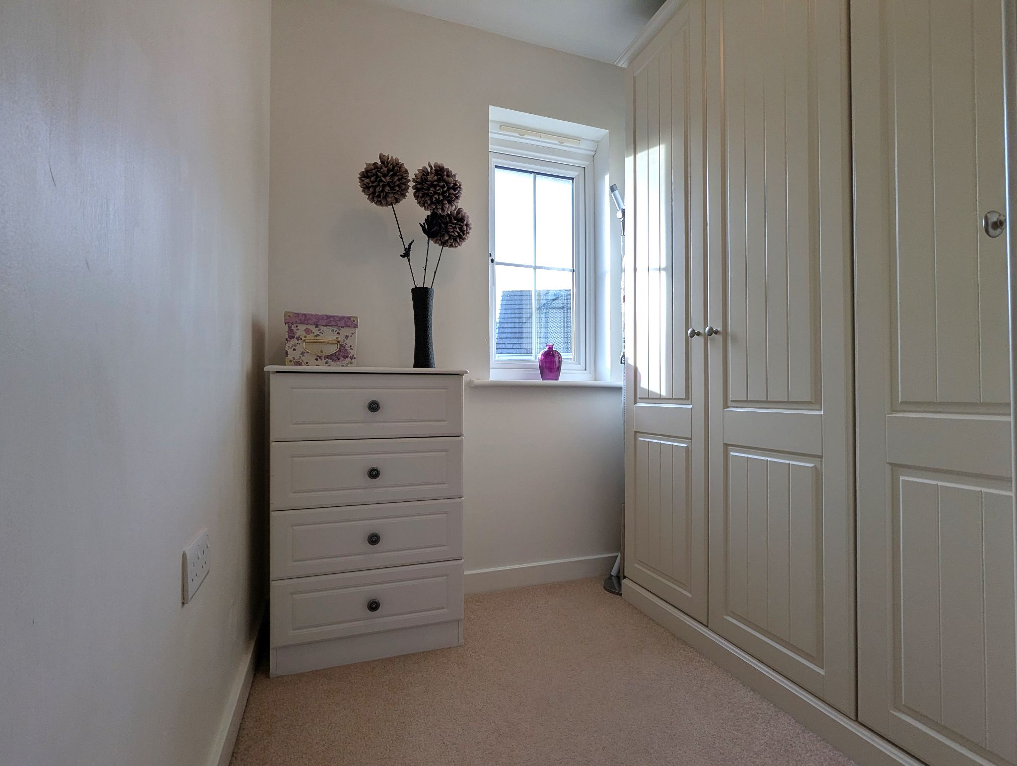 Bedroom Three - 10' x 6'2 (3.06m x 1.90m) - Currently used as a dressing room, this carpeted bedroom has fitted wardrobes as well as a built-in cupboard, front-facing UPVC double glazed window and wall mounted radiator.