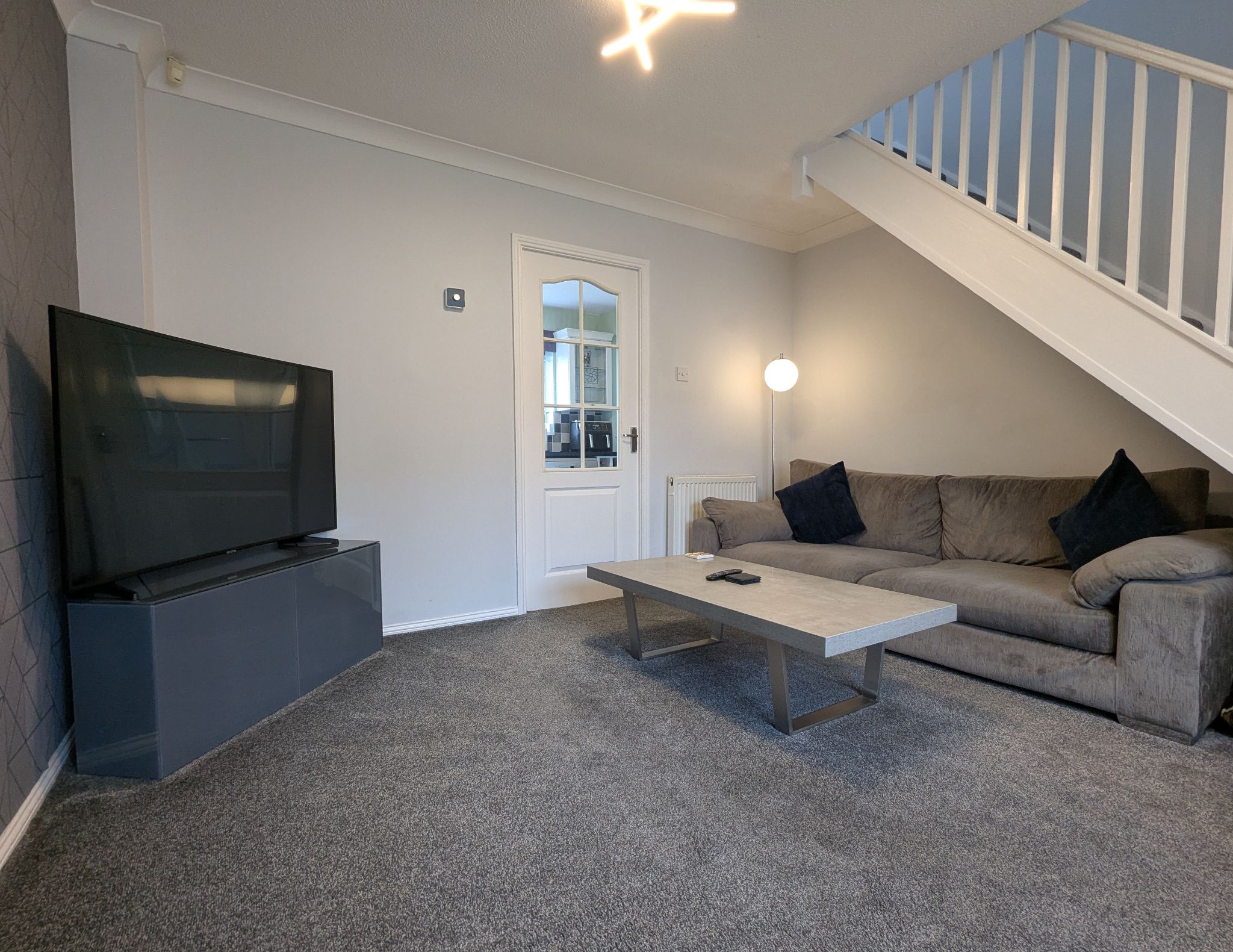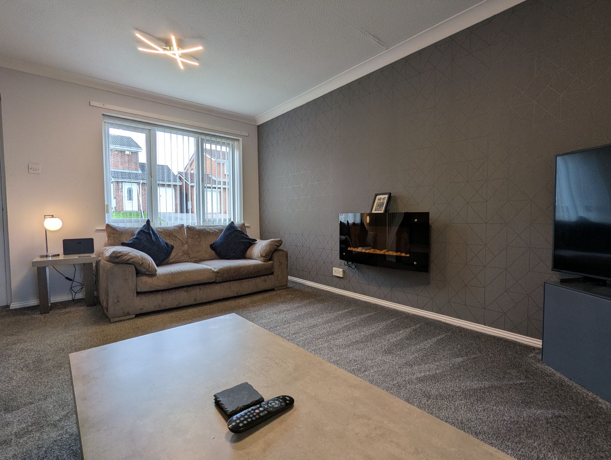Lounge - 14'8 x 12' (4.53m x 3.68m) - Spacious carpeted lounge with a front-facing UPVC double glazed window, wall mounted electric fire and wall mounted radiator. Access to the kitchen/diner towards the rear.