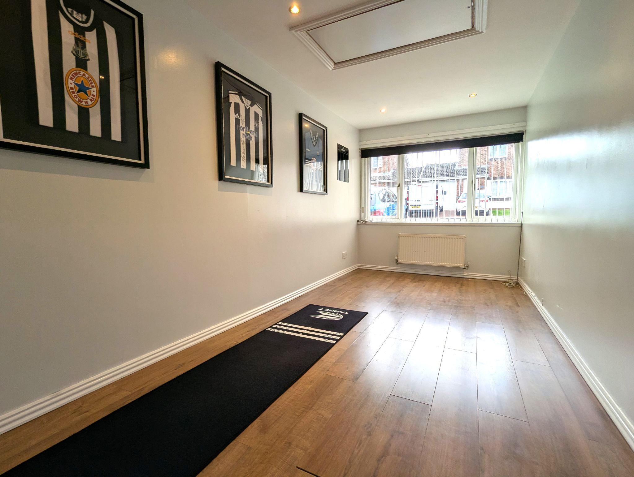 2nd Reception Room - 16'4 x 7' (5.01m x 2.14m) - A converted garage currently used as a games room. With laminate flooring throughout, front-facing UPVC double glazed window, access to a separate loft space for extra storage and wall mounted radiator.