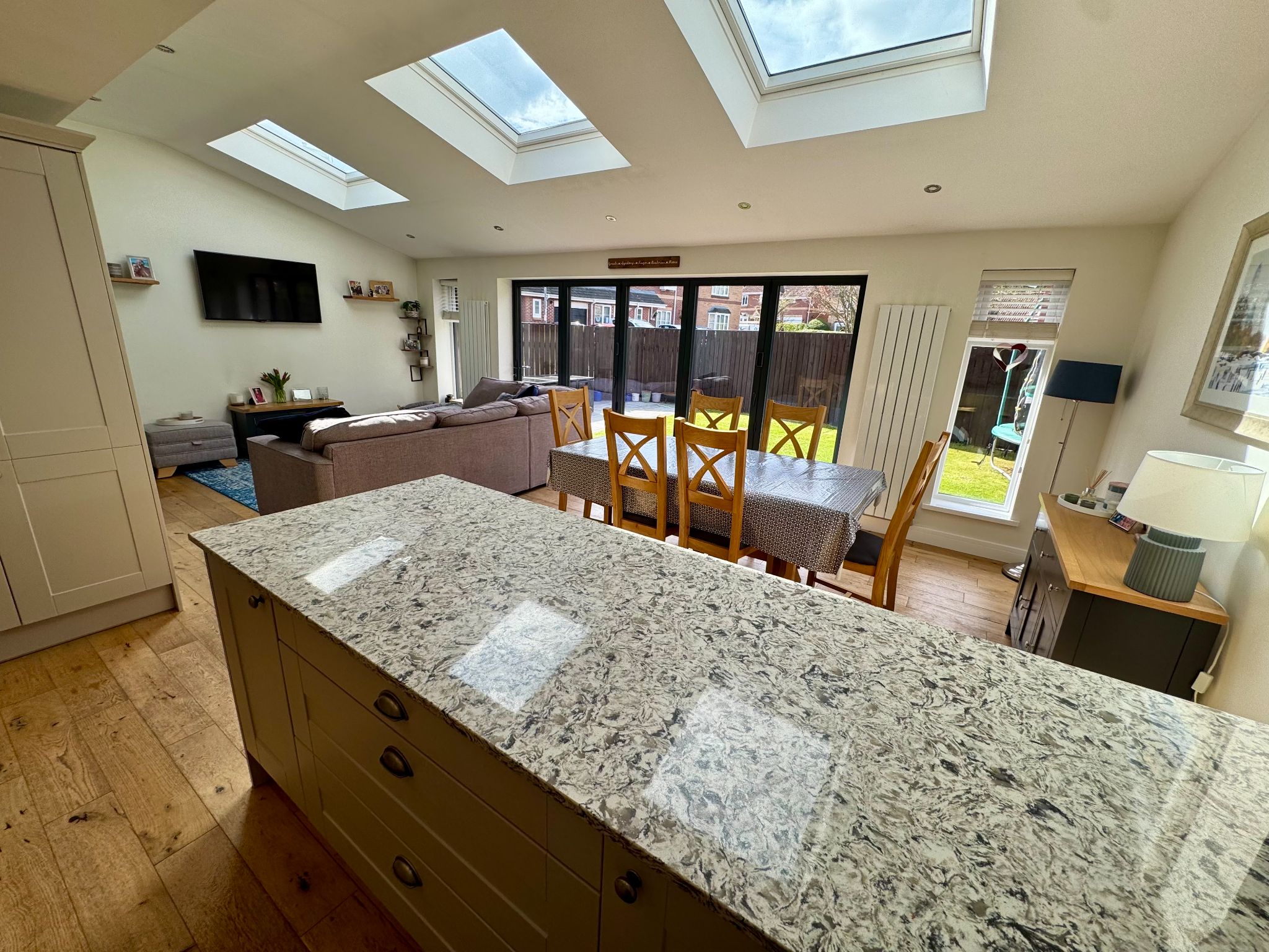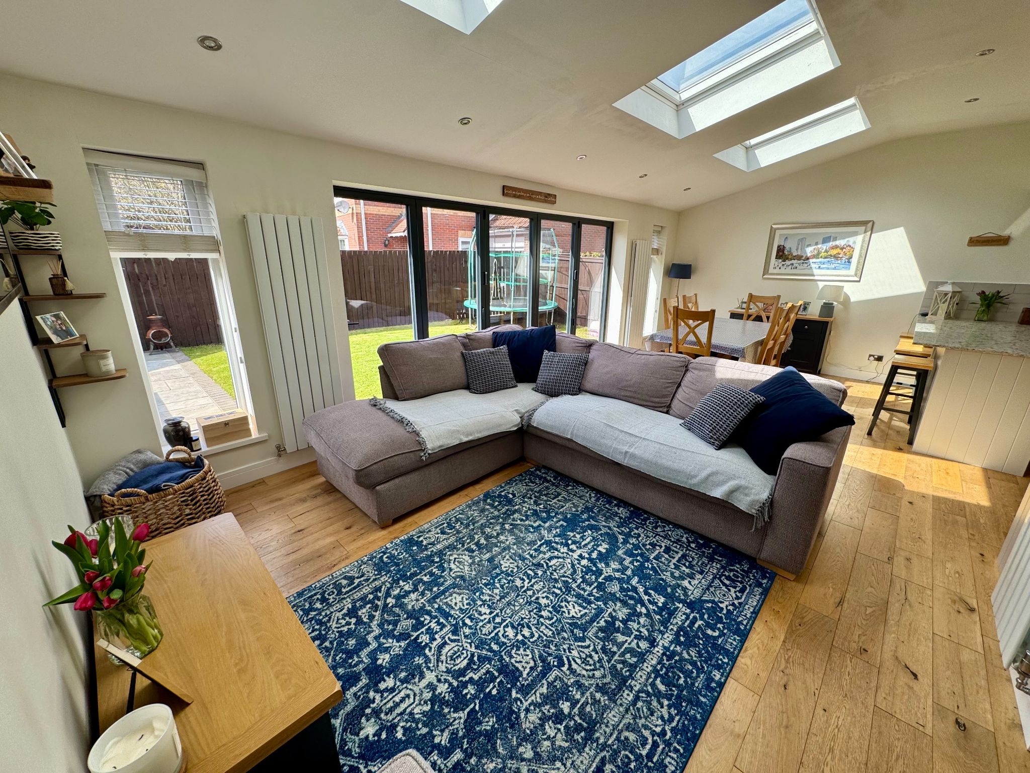 Superb open plan living room / dining room with velux windows to rear, bi-fold doors3 radiators and storage cupboard. Leading to the rear garden this space is definitely the heart of the home.