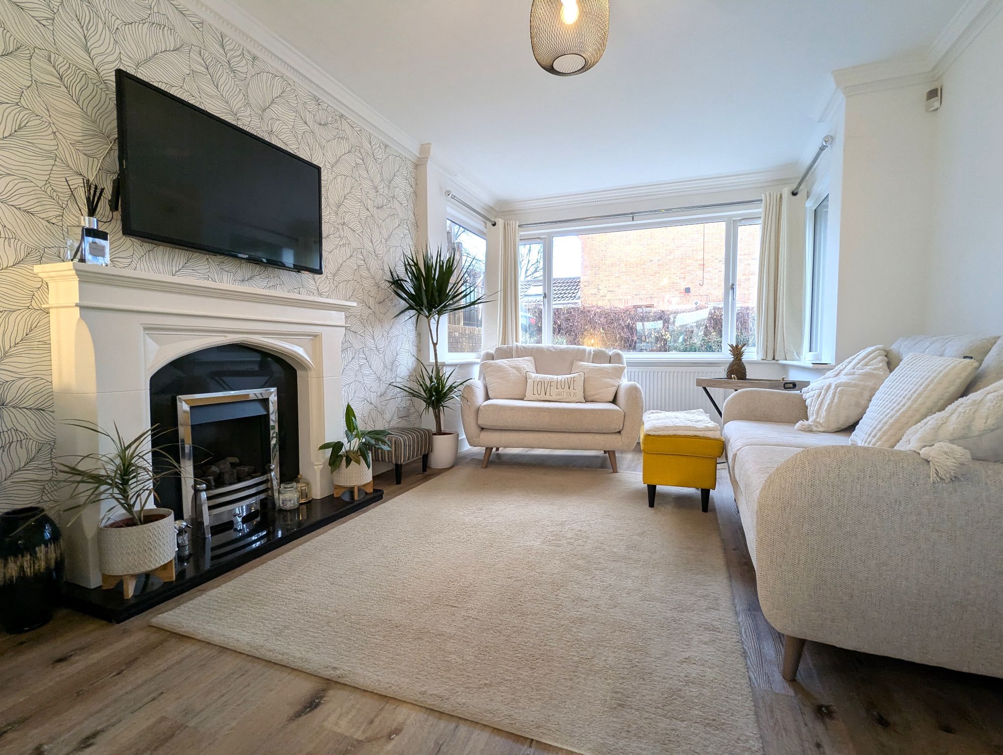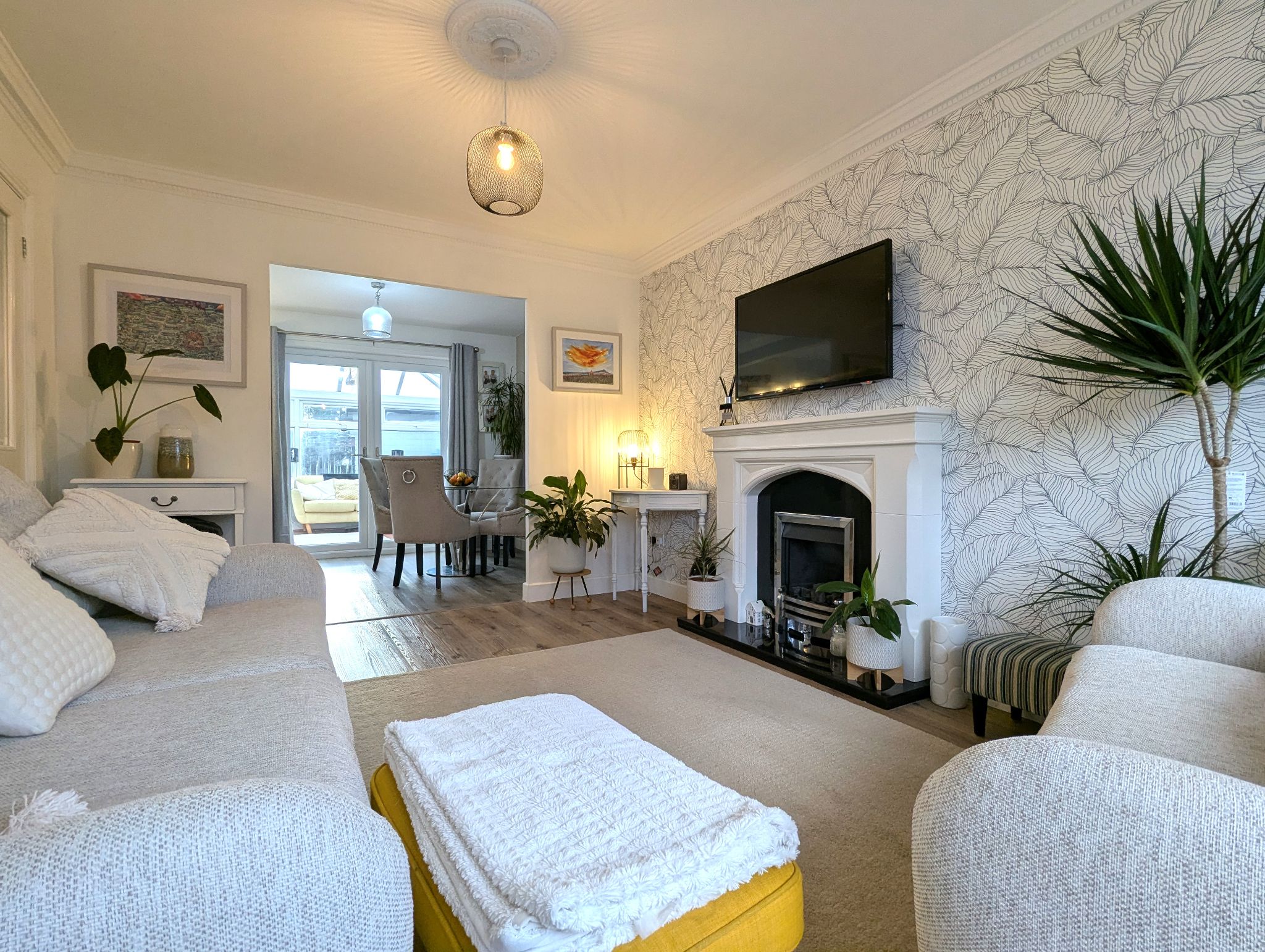 Lounge - 16'1 x 10'4 (4.92m x 3.19m) - Brightly decorated lounge with laminate flooring and front-facing UPVC double glazed bay style window. Gas fireplace and wall mounted radiator. Open plan aspect with the kitchen/diner.