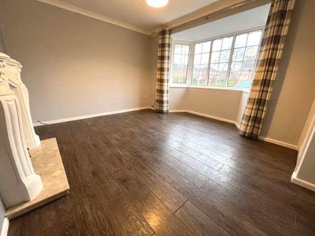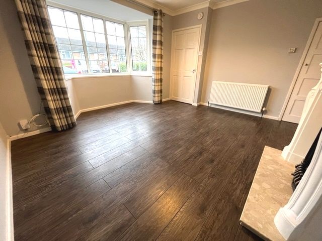 Reception room 1 - 4.03 x 3.82 - double panel radiator, double glazed UPVC bay window to front with curtain pole & curtains, coving, gas fire with mantelpiece, under stair cupboard, TV point, telephone point & laminate flooring.