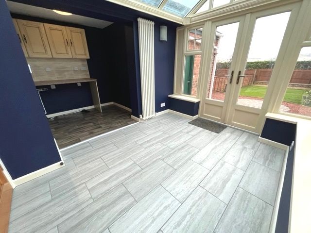 Conservatory - 2.47 x 2.82 - vertical radiator, pendant light fitting & tiled flooring.