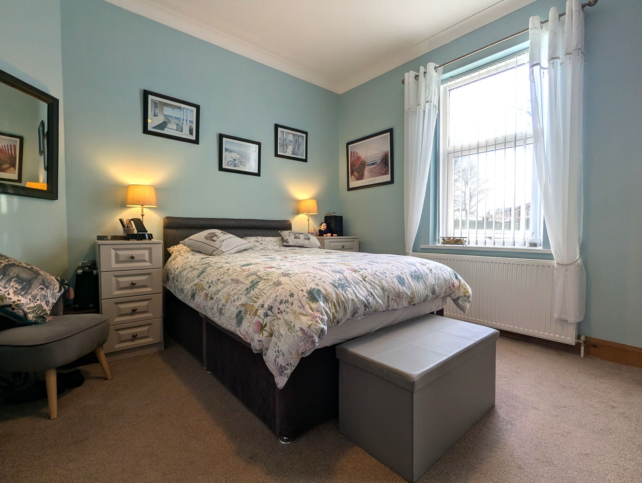 Bedroom One - 12' x 11'9 (3.67m x 3.64m) - Spacious carpeted bedroom with a front-facing UPVC double glazed window and wall mounted radiator.