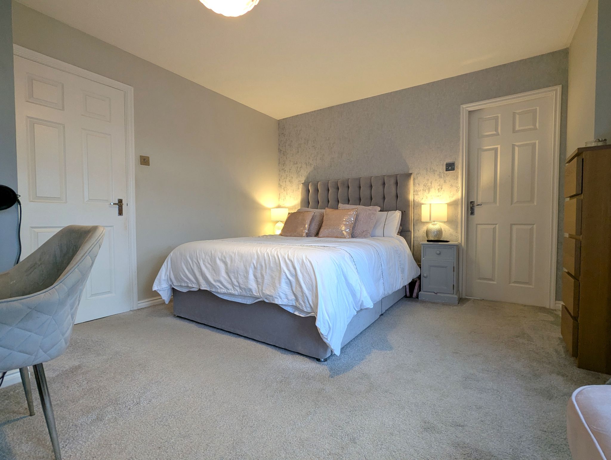 Externally, the property benefits from a south-facing private rear garden with hot tub area, ideal for summer gatherings or tranquil mornings while to the front there is generous off-street parking for multiple vehicles. The neighbourhood itself is a welcoming and quiet environment, perfect for families.