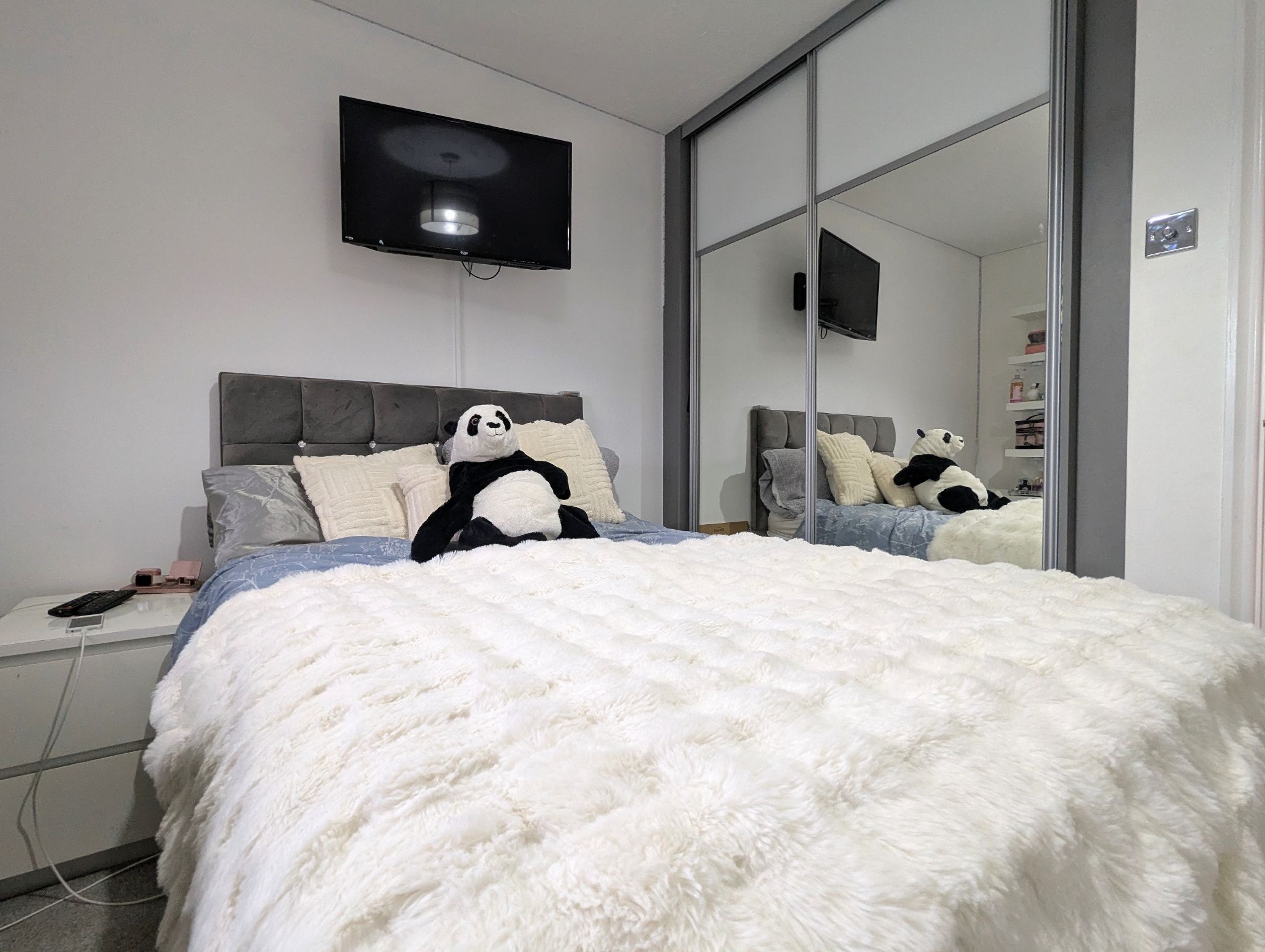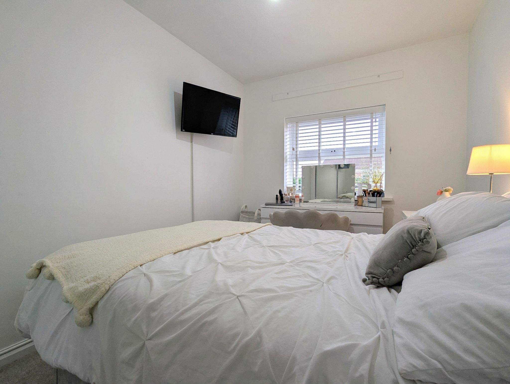 Bedroom Two - 10'8 x 7'9 (3.30m x 2.41m) - Carpeted bedroom with a rear-facing UPVC double glazed window, large fitted wardrobe with mirrored sliding doors and wall mounted radiator.