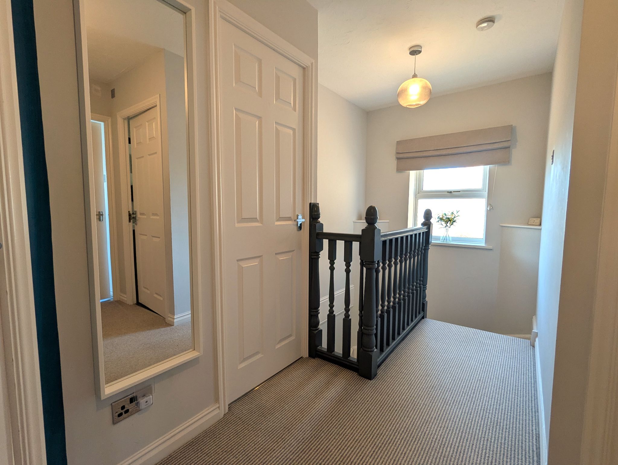 First Floor Landing - Carpeted landing with a side-facing UPVC double glazed window. Offering access to 4 well-proportioned bedrooms, a family bathroom, built-in cupboard and loft hatch.
