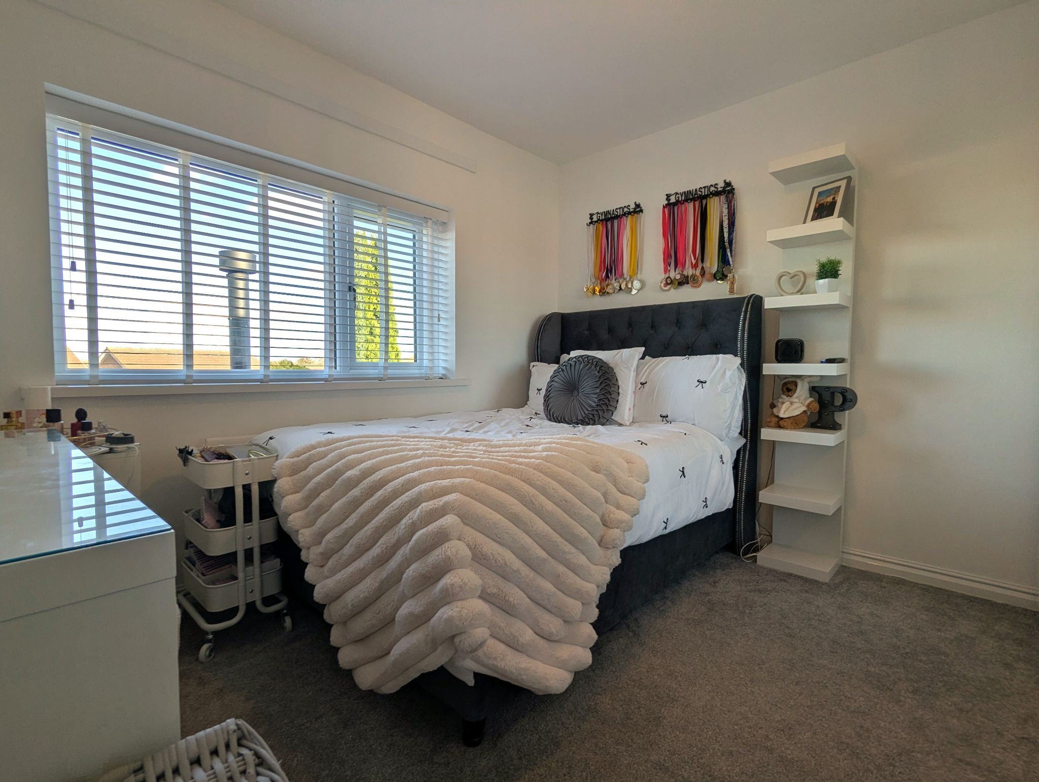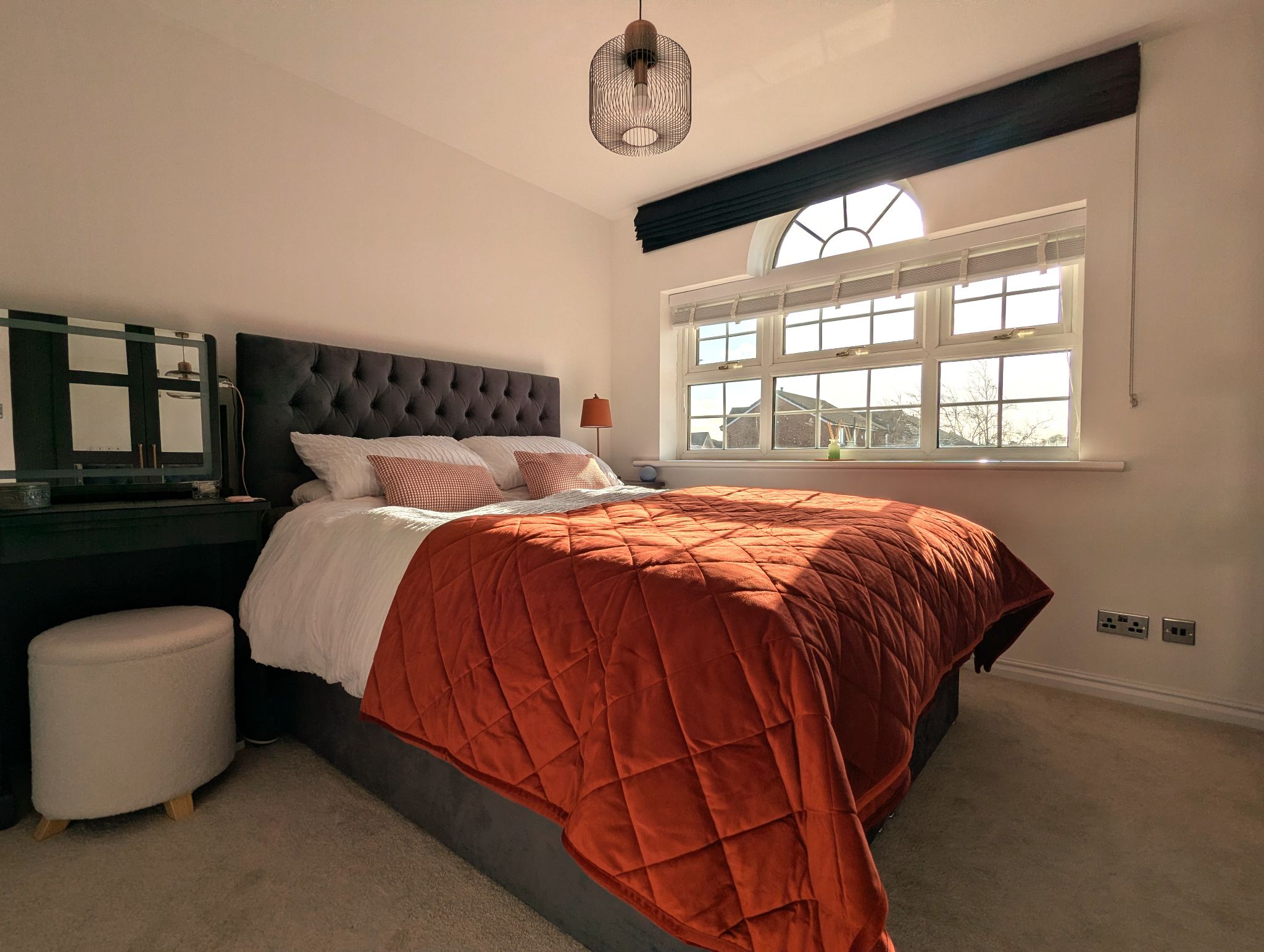 Bedroom One - 11'3 x 9'4 (3.46m x 2.87m) - A carpeted master bedroom with a stunning front-facing UPVC double glazed feature window. Recently installed fitted wardrobes and matching dressing table. Wall mounted radiator and access to an ensuite.