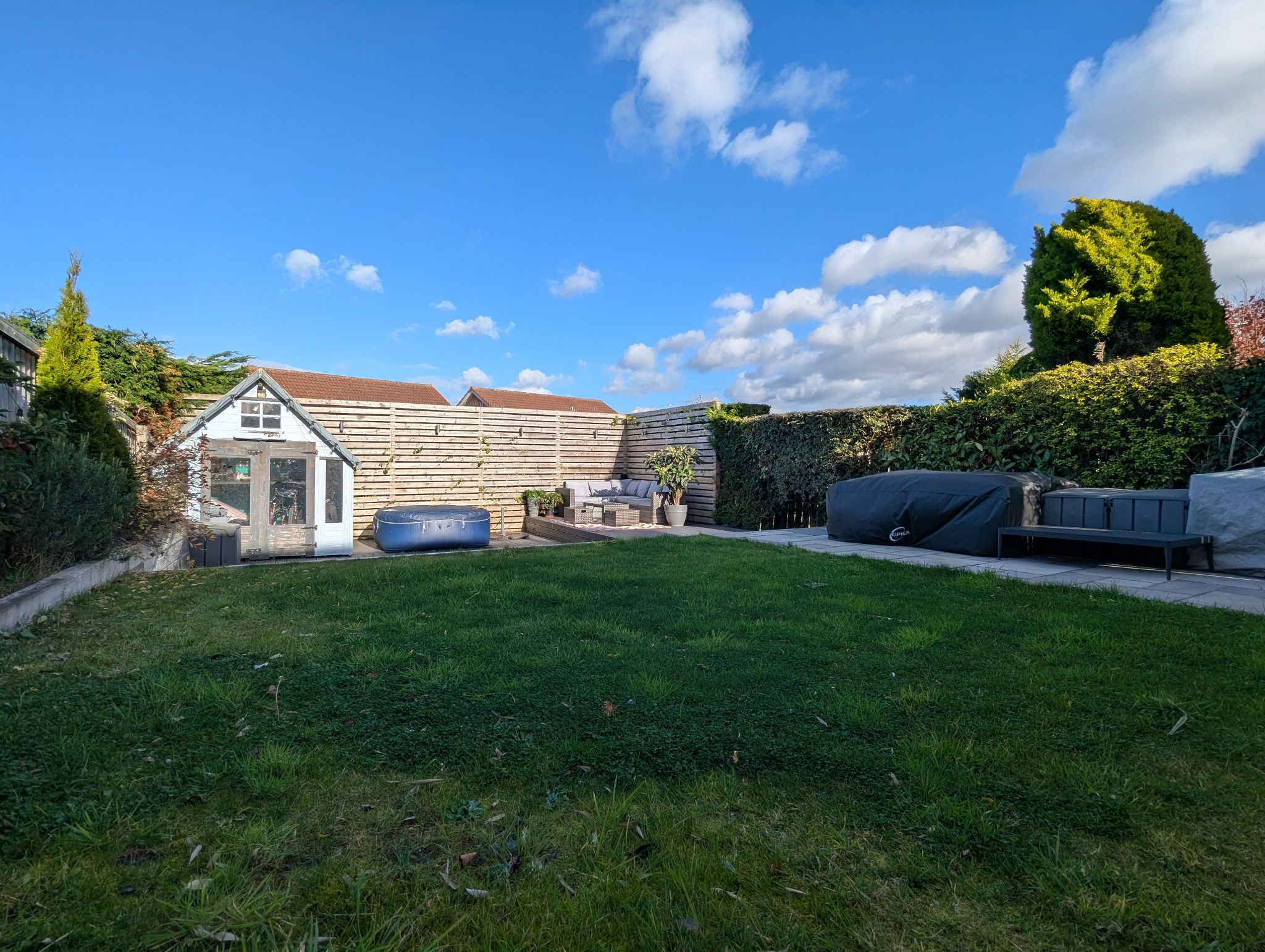 Exterior - Large block paved drive for 2 cars and small lawn to the front with access to garage area via an up and over door for storage. Gated side access to the rear. Large private garden to the rear with patio area.