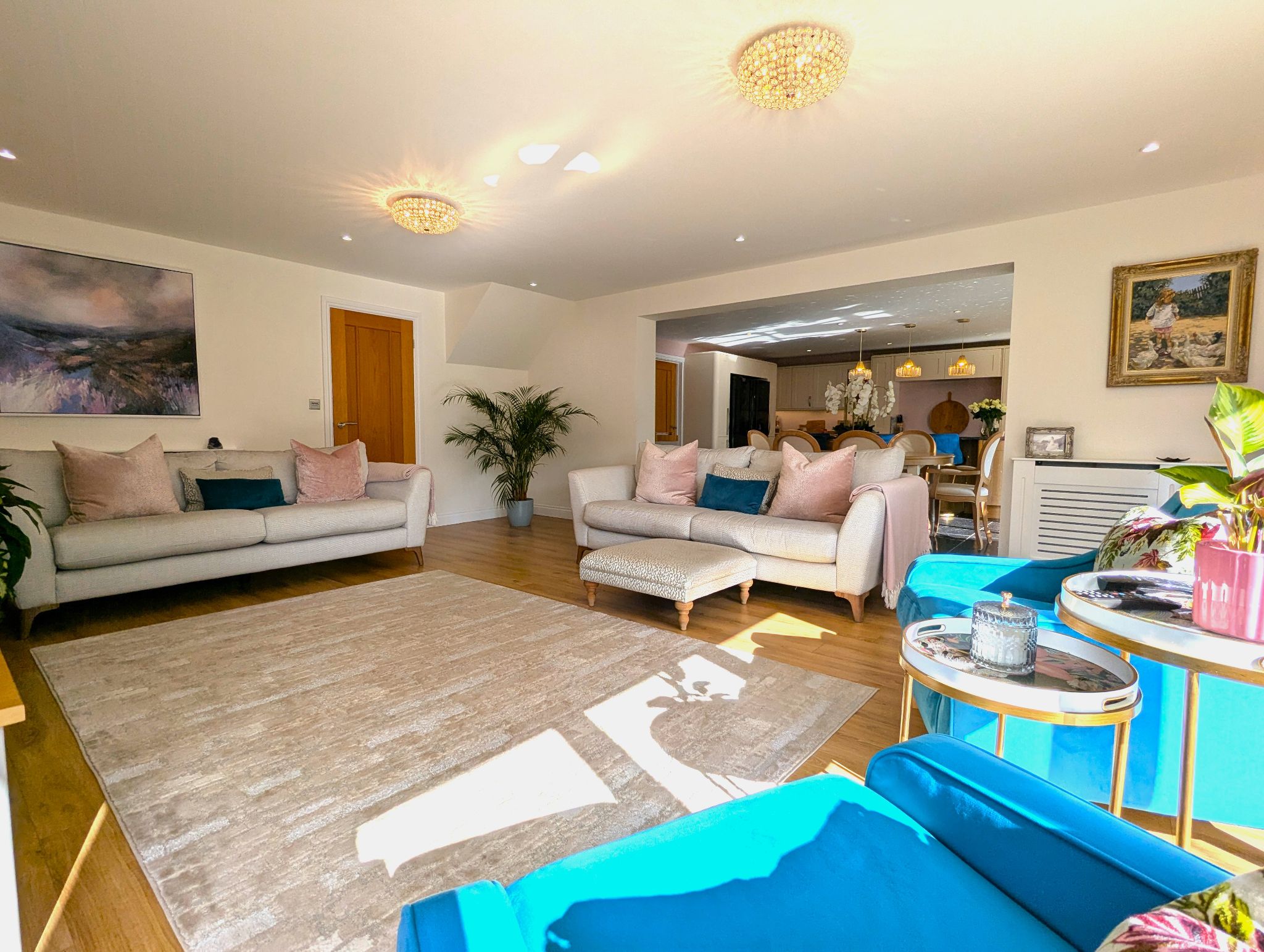 Behind the elegant exterior lies a spacious interior comprising four well-proportioned bedrooms, three stylish bathrooms, and two generous reception rooms. Thoughtfully designed, the home offers a seamless blend of modern comfort and traditional charm. On entering, you're greeted by a welcoming hallway which leads to beautifully appointed living areas ideal for entertaining or relaxing with family. The spacious kitchen is both functional and attractive, flowing through to a dining space and snug beyond that enjoys views over the landscaped garden. The presence of three bathrooms, including an en-suite and walk-in wardrobe (via the en-suite) to the master bedroom, ensures convenience and privacy for all residents.