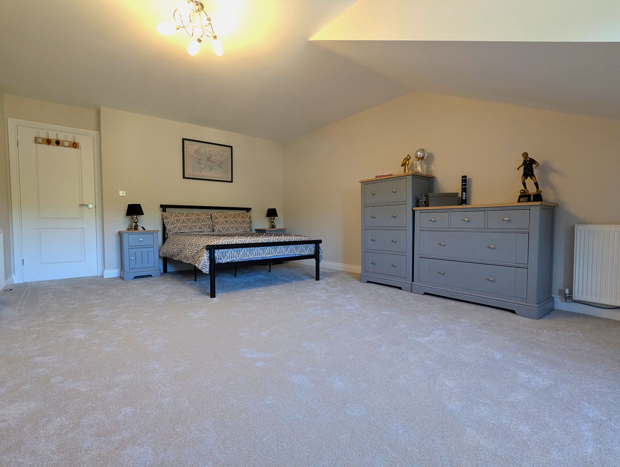 Bedroom Two 21’4 x 13’6 (6.54m x 4.17m) A super spacious bedroom with carpeted flooring and a front-facing UPVC double glazed window. Built-in cupboard and separate built-in wardrobe. 2 wall mounted radiators.