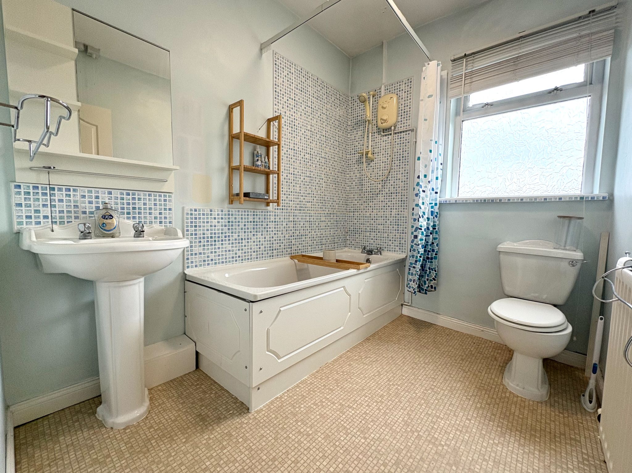 To the 1st floor 2 excellent sized bedrooms are available. Bedroom 1 is to the front and provides ample space for larger style beds and wardrobes. Several properties in this street have also installed staircases from the front bedroom which may be an option subject to planning. Bedroom 2 again is a generous double and offers excellent far reaching views to the rear. Both bath and shower facilities are both installed in the family bathroom which are complimented by part tiled walls.