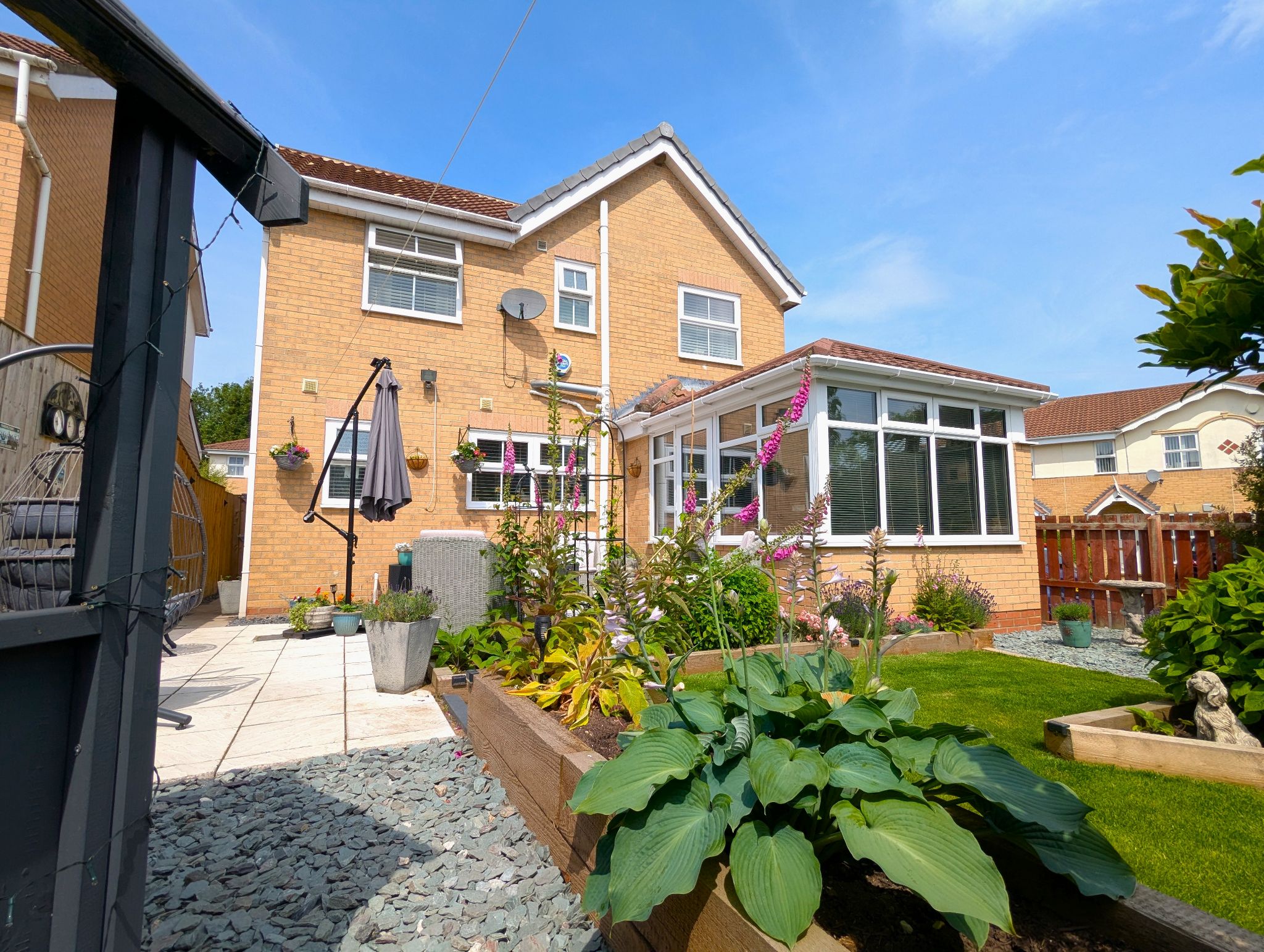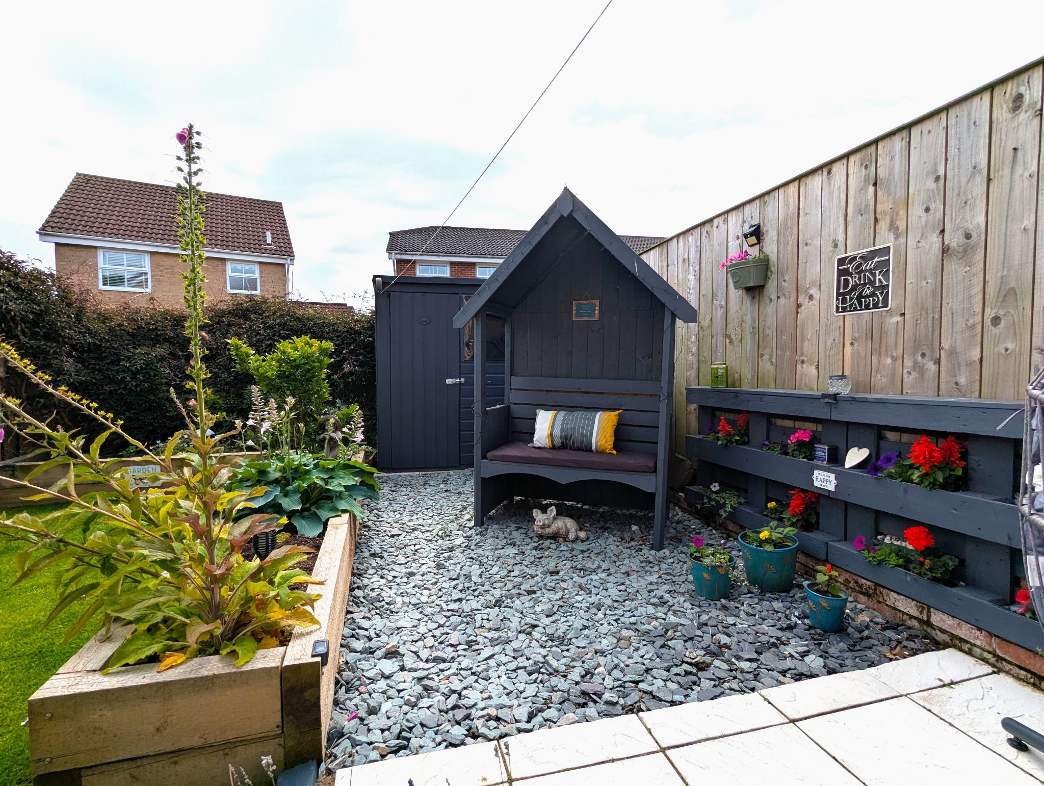 The front exterior offers a well-presented garden with a blockpaved drive leading to an integral garage with a remote controlled roller shutter door and external car charging port. There is gated side access to a larger private garden at the rear with 2 decking areas, 2 grey slate gravel features and a patio area, which also boasts a shed and outdoor sockets.