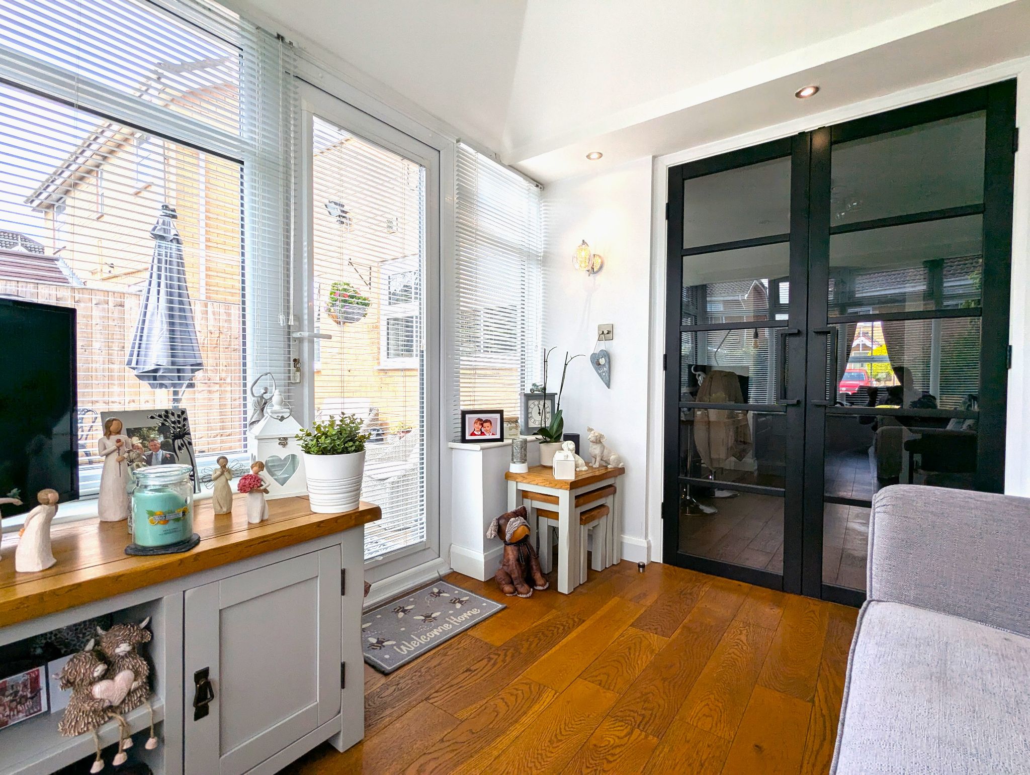 Sun Room 9'2 x 8' (2.80m x 2.43m) - The engineered wood flooring continues through into the Sun Room which looks out onto the rear garden with UPVC double glazed windows to the most part and a patio door.