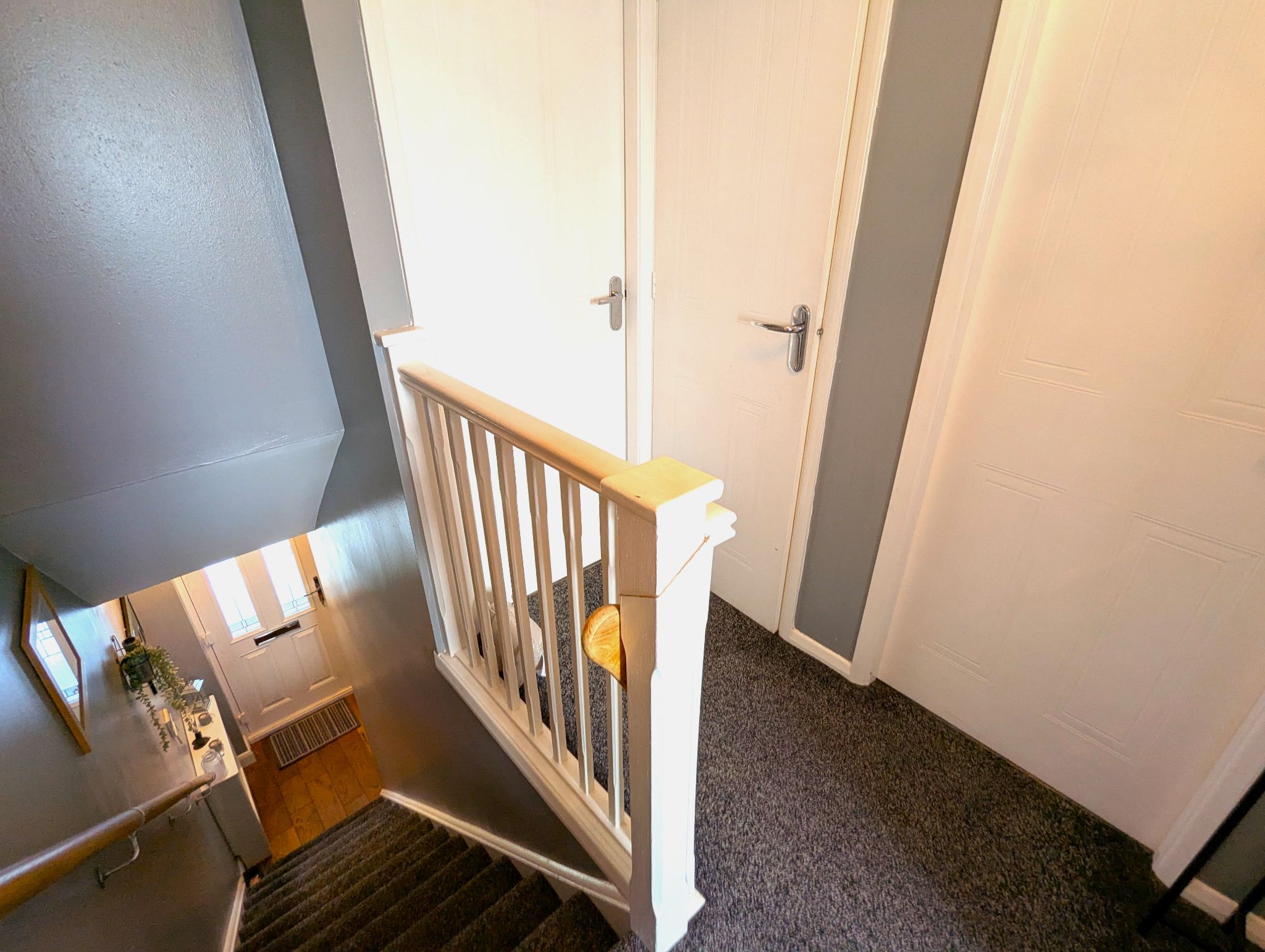 First Floor Landing - Carpeted landing offering access to 3 bedrooms, family bathroom, built-in cupboard and loft hatch.