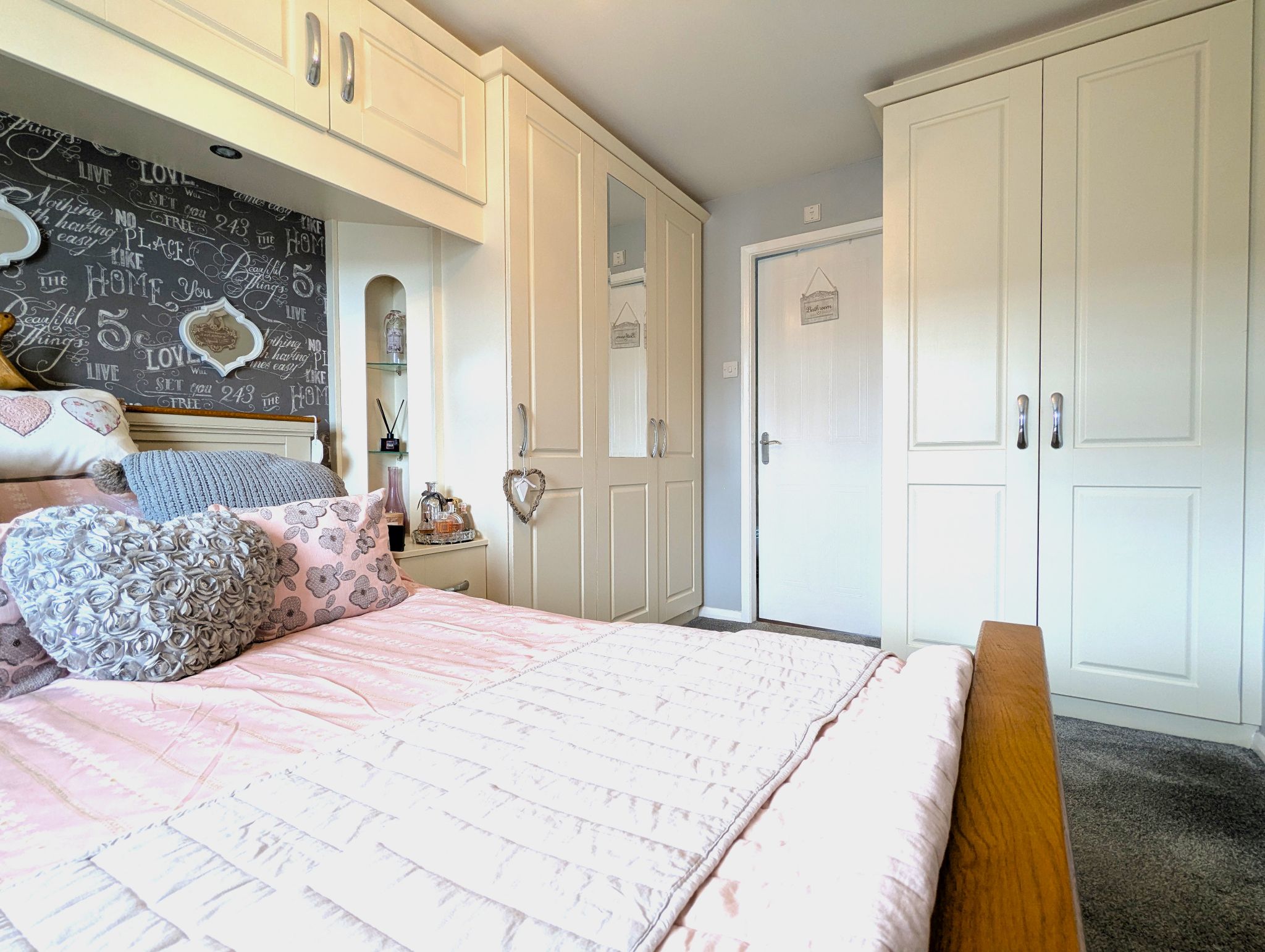 Bedroom Two 8'3 x 11'3 (2.52m x 3.44m) - Carpeted bedroom with 2 front-facing UPVC double glazed windows. 2 fitted wardrobes with sliding doors and a built-in cupboard. Wall mounted radiator.