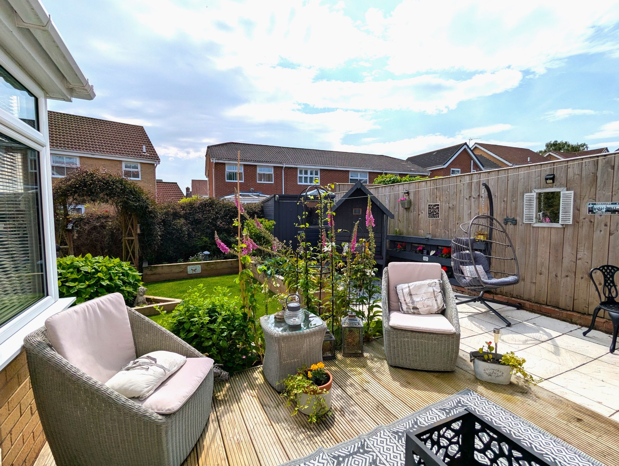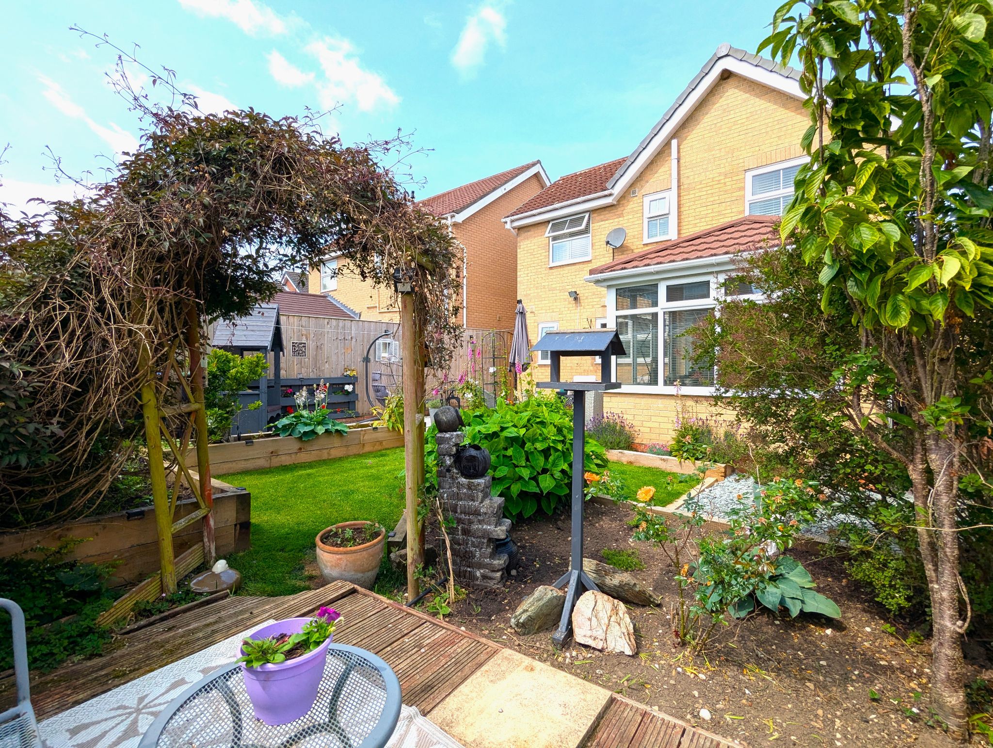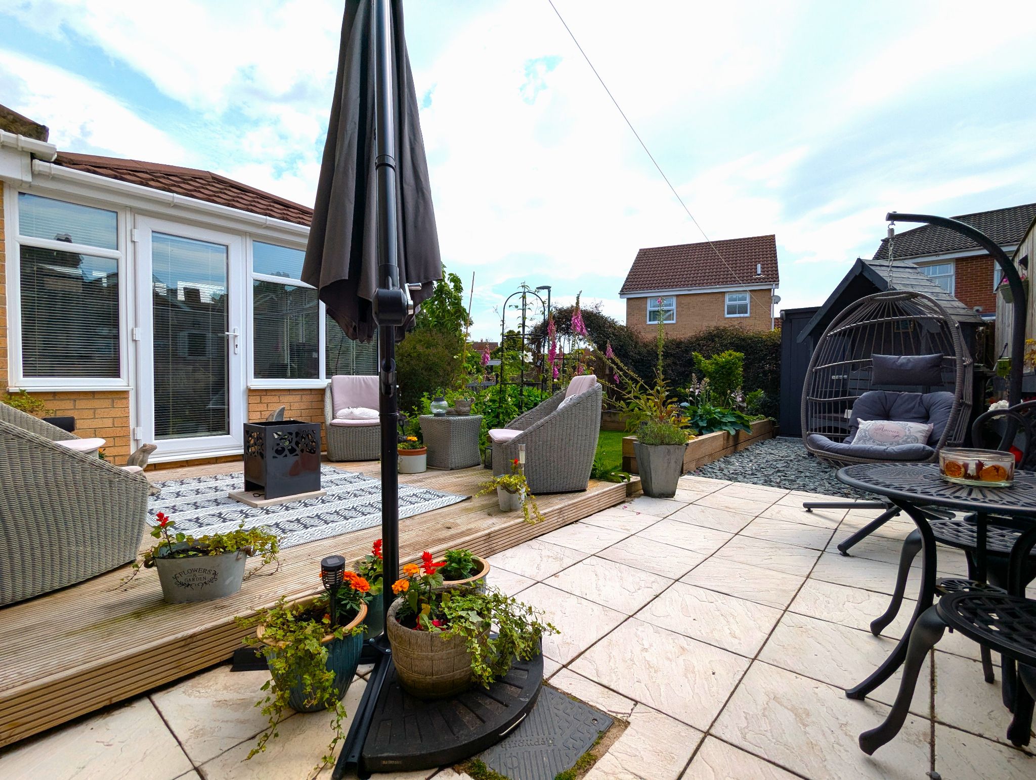 Exterior - The front exterior has a well-presented garden with a lovely decking feature and planting pots. Block paved drive leading to an integral garage (16'6 x 7'7 (5.05m x 2.34m)) with a remote controlled roller shutter door. Car charging port and gated side access to the rear. There is a larger rear garden with 2 decking areas, a patio area, 2 grey slate gravelled features and a shed. There is also a set of outdoor sockets.