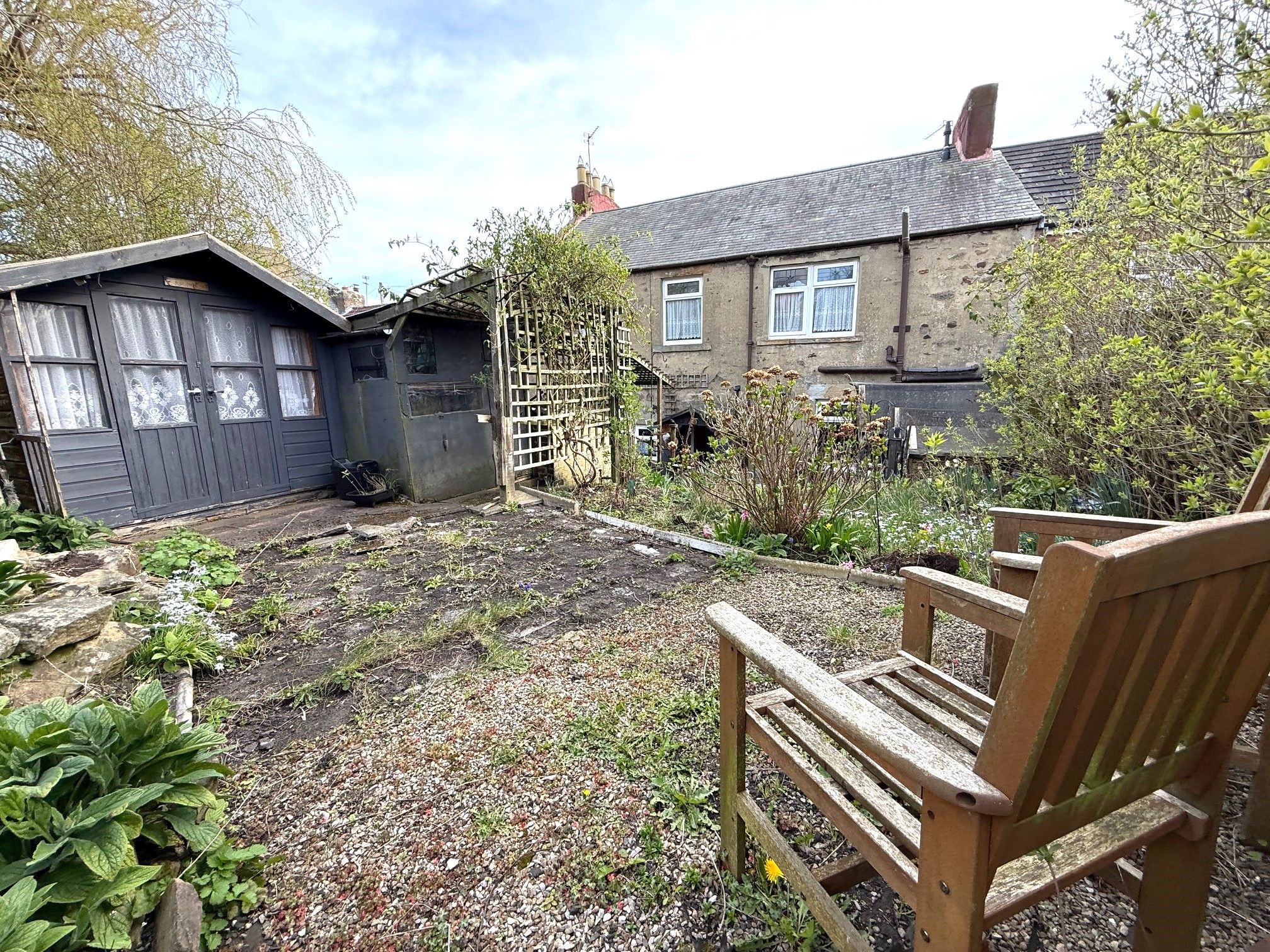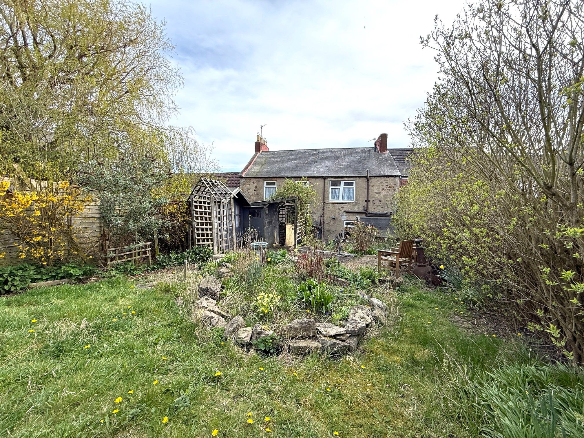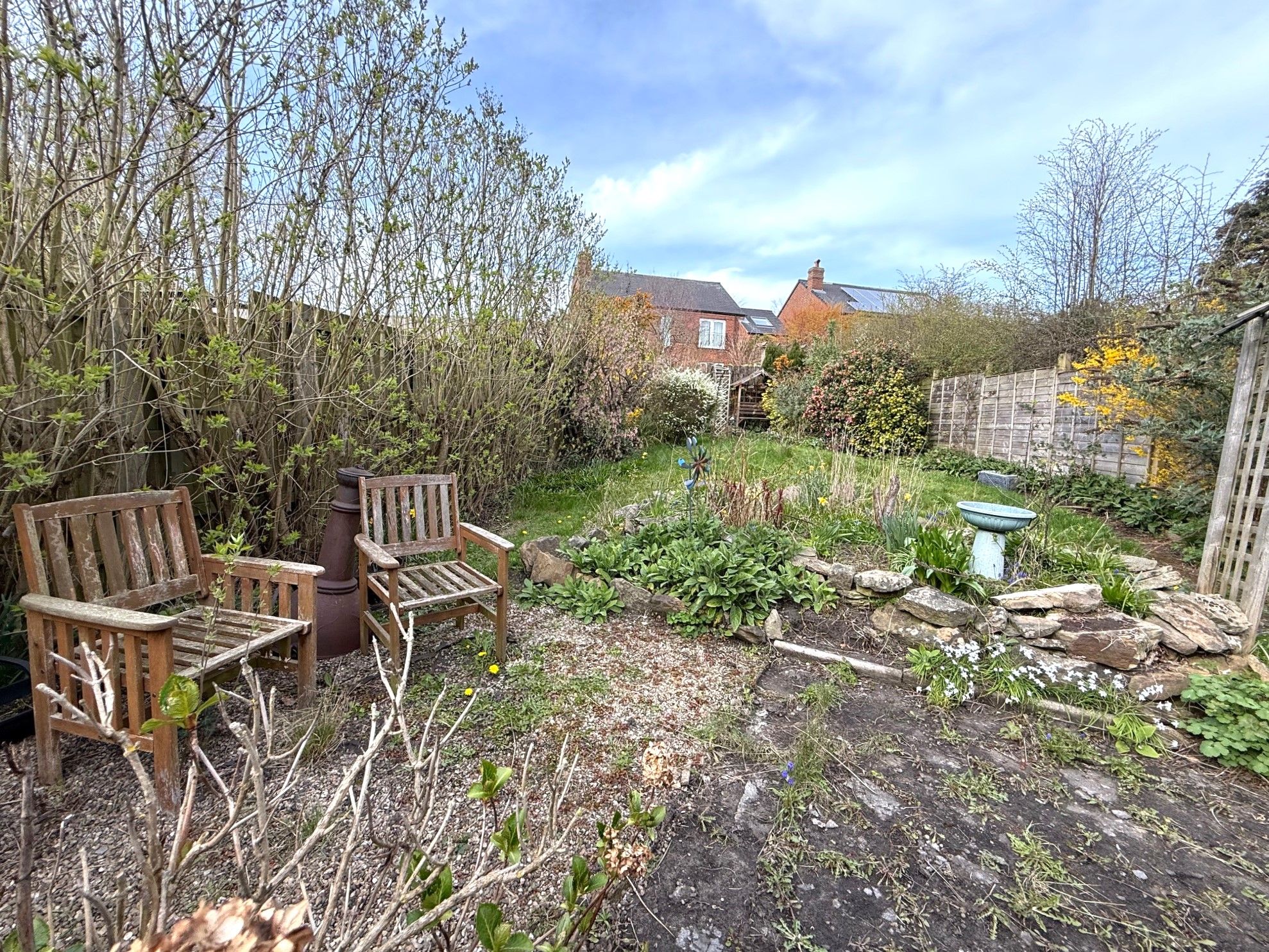 Externally there's mature gardens to the rear with lower patio and storage with steps up to a garden with planting areas, lawn, trees and shrubs.