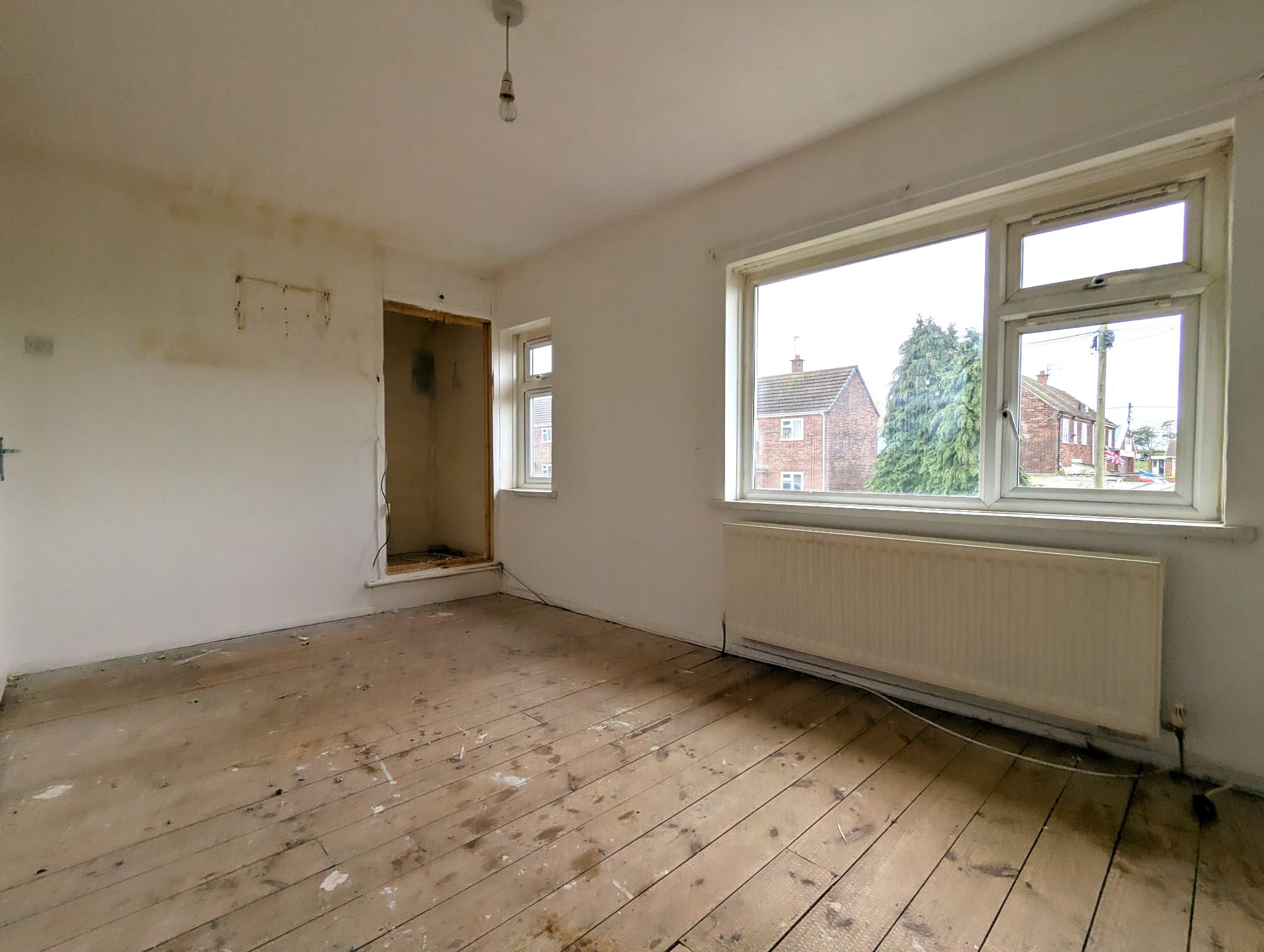 Bedroom One - 9' x 14'1 (2.76m x 4.32m) - Spacious bedroom with a front-facing double glazed window, wall mounted radiator and built-in cupboard.