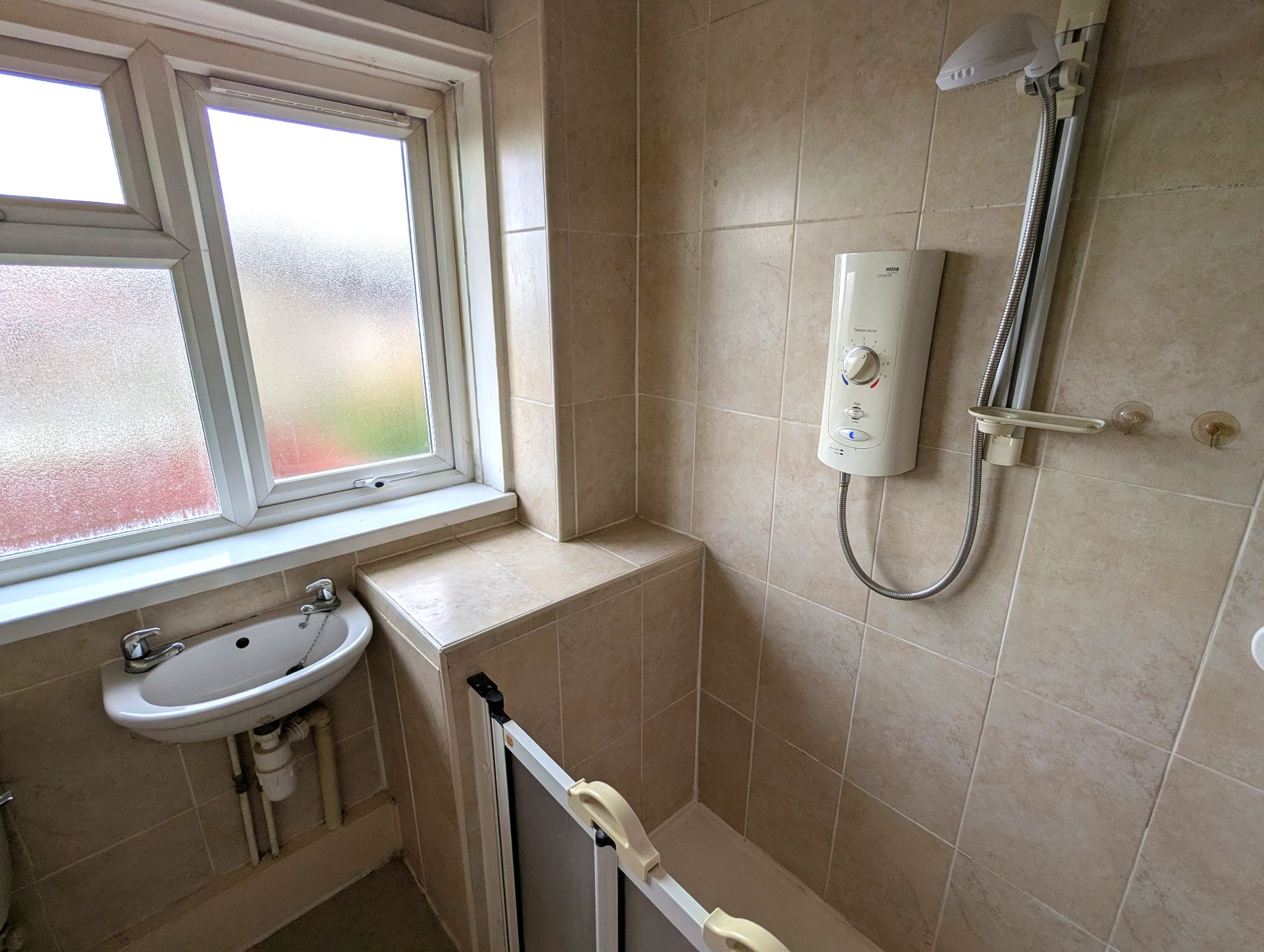 Wet Room - 6' x 6'5 (1.85m x 2.01m) - Vinyl flooring, access to a toilet, wash basin and walk-in shower area with an electric shower and tiled splashback. Rear-facing UPVC double glazed window, wall mounted radiator and extractor fan.