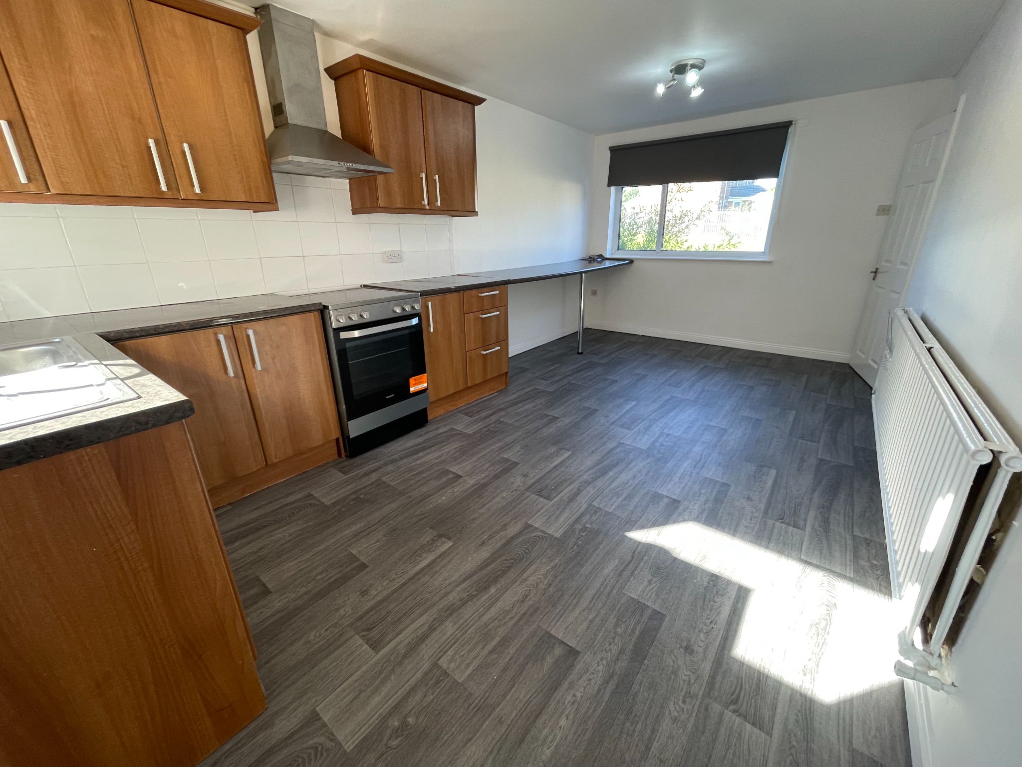 Kitchen 10.2ft x 18.7ft double glazed window x2, electric oven and hob, extractor fan, space for fridge-freezer, stainless steel sink, mixer taps, tiled splashbacks, double panel radiator, pendant light fitting, vinyl flooring