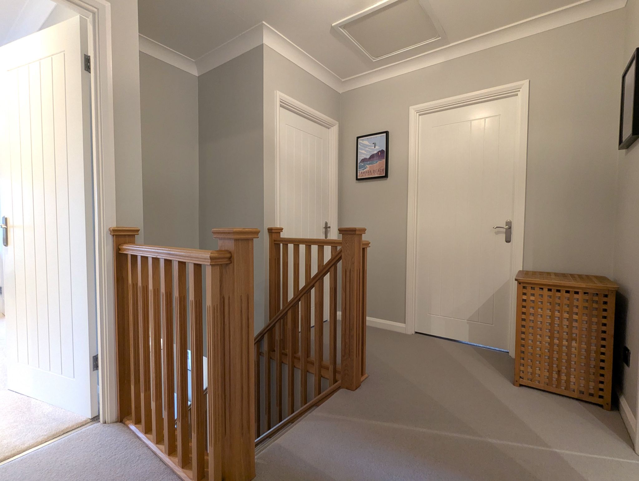 First Floor Landing - Carpeted landing with access to 4 generous sized bedrooms, family bathroom, built-in cupboard and loft hatch.