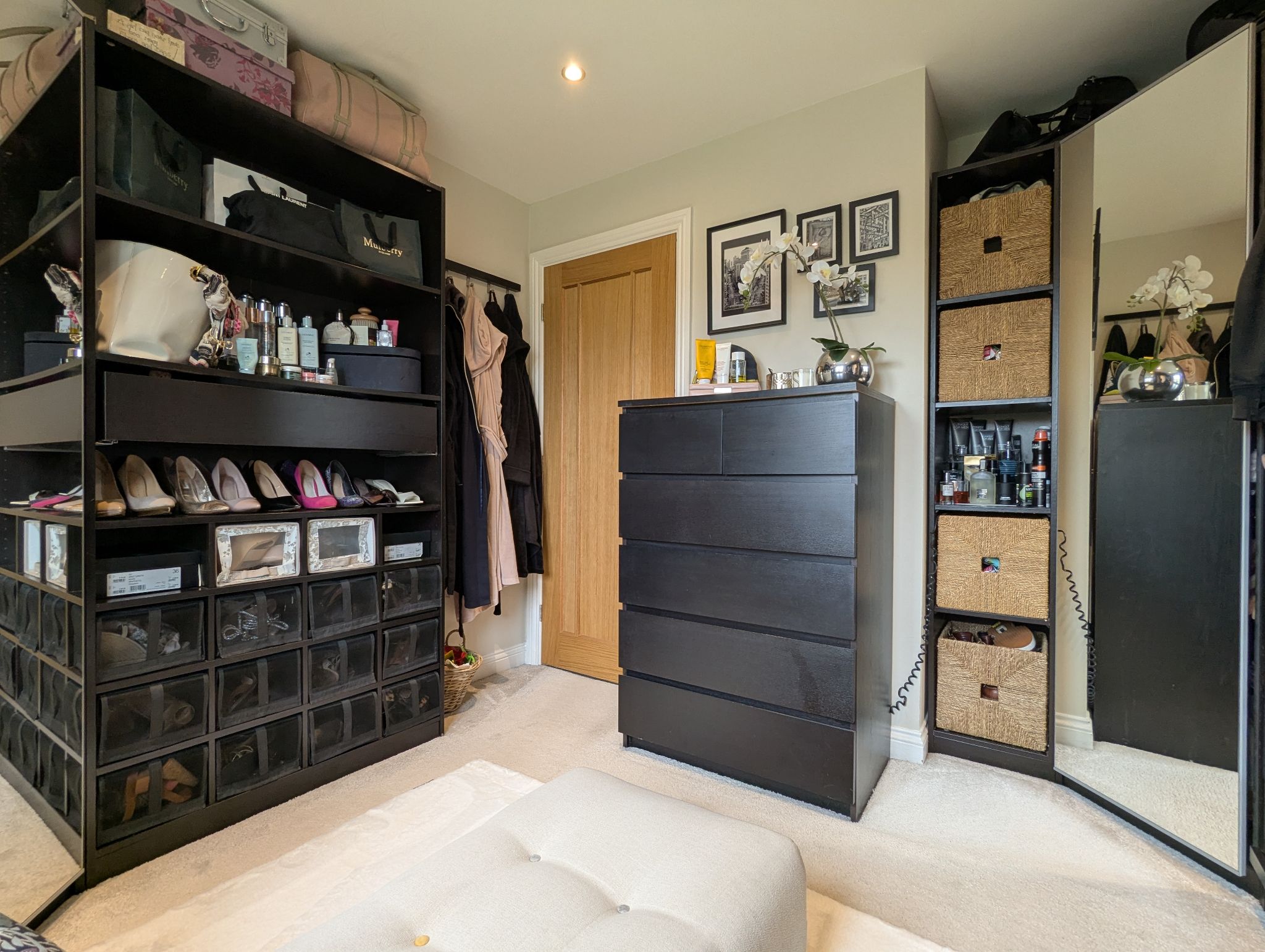Bedroom Four/Dressing Room - 8'3 x 9' (2.53m x 2.77m) - Currently used as a walk-in dressing room, this carpeted double bedroom has a rear-facing UPVC double glazed window and wall mounted radiator.