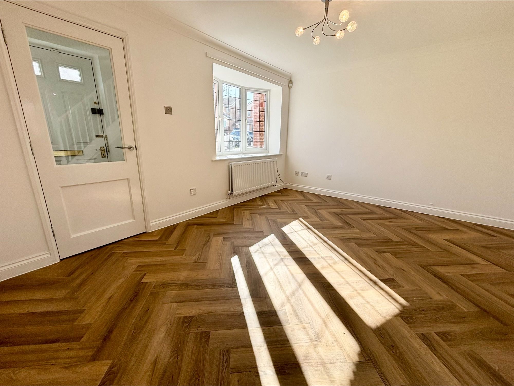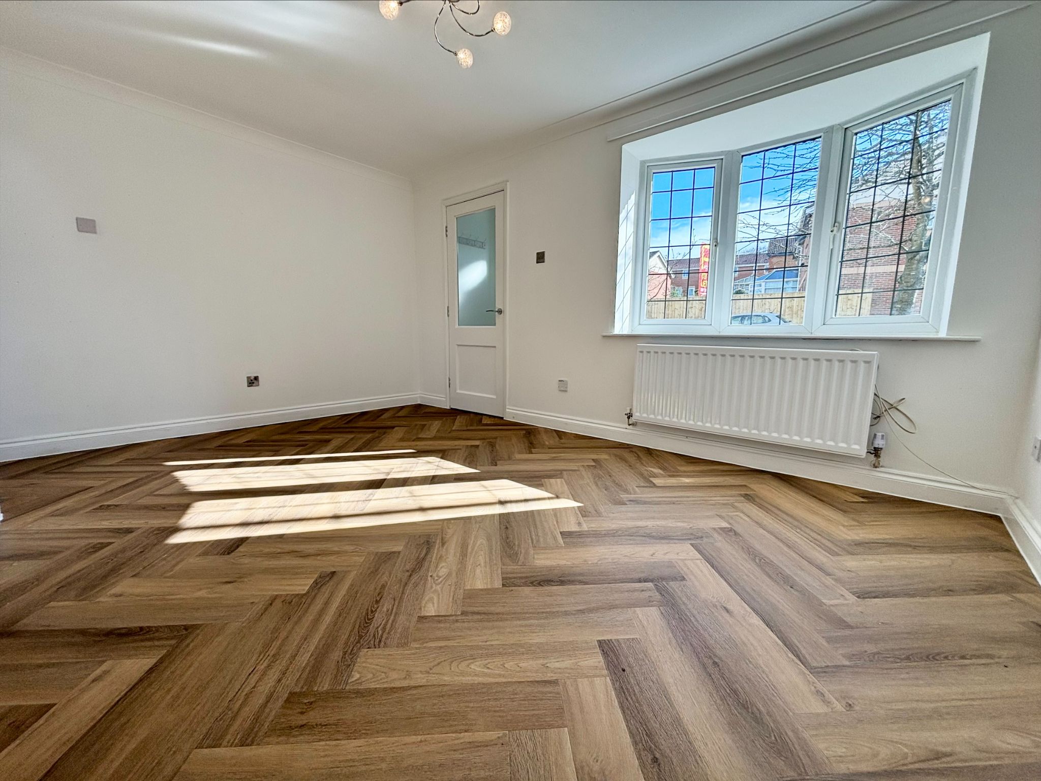 Lounge- 4.429m x 3.796m - Bay window to front, double panel radiator, 5 bulb light fitting, Herringbone laminate flooring, TV point.