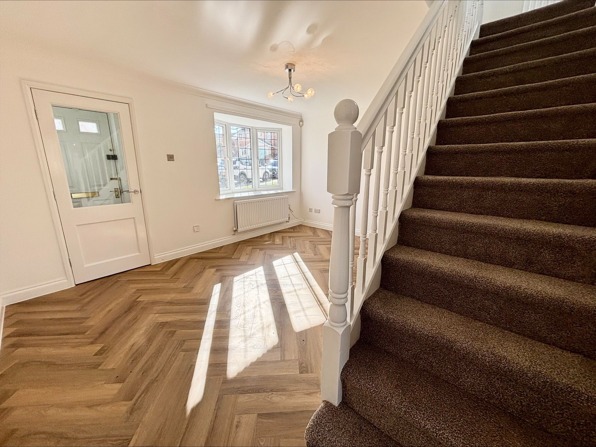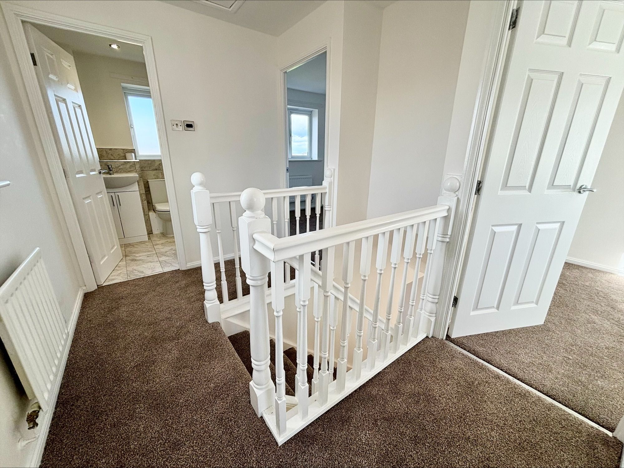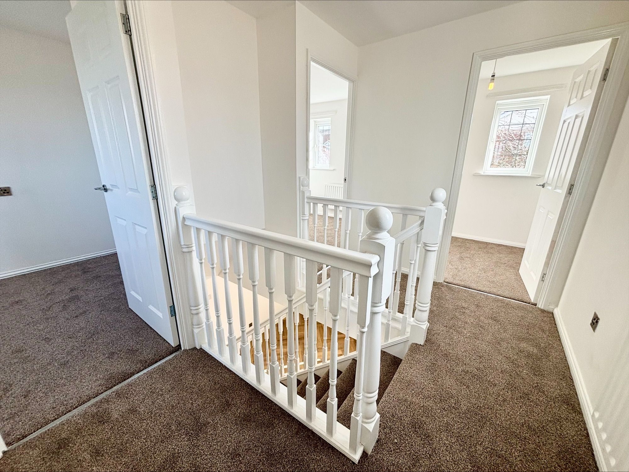 Stairs & Landing - 2.88m x 2.432m - Large split landing, window to side, single panel radiator, pendant light fitting, newly fitted carpet.