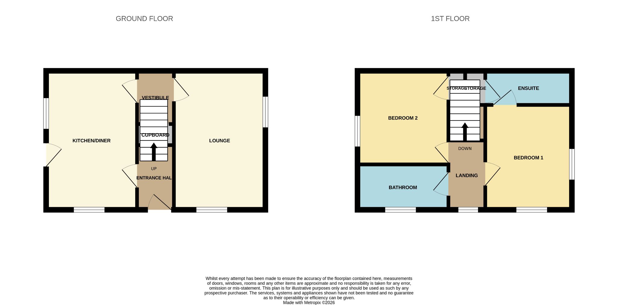 To the 1st floor 2 double bedrooms are available with an en-suite shower room off bedroom 1. The en-suite comprises of a WC, hand basin and shower enclosure. An additional good sized storage cupboard also provides an excellent area for additional storage. Bedroom 2 again is a generous double with ample space for bedroom furnishings. From the landing the family bathroom provides a bath, WC and hand basin.