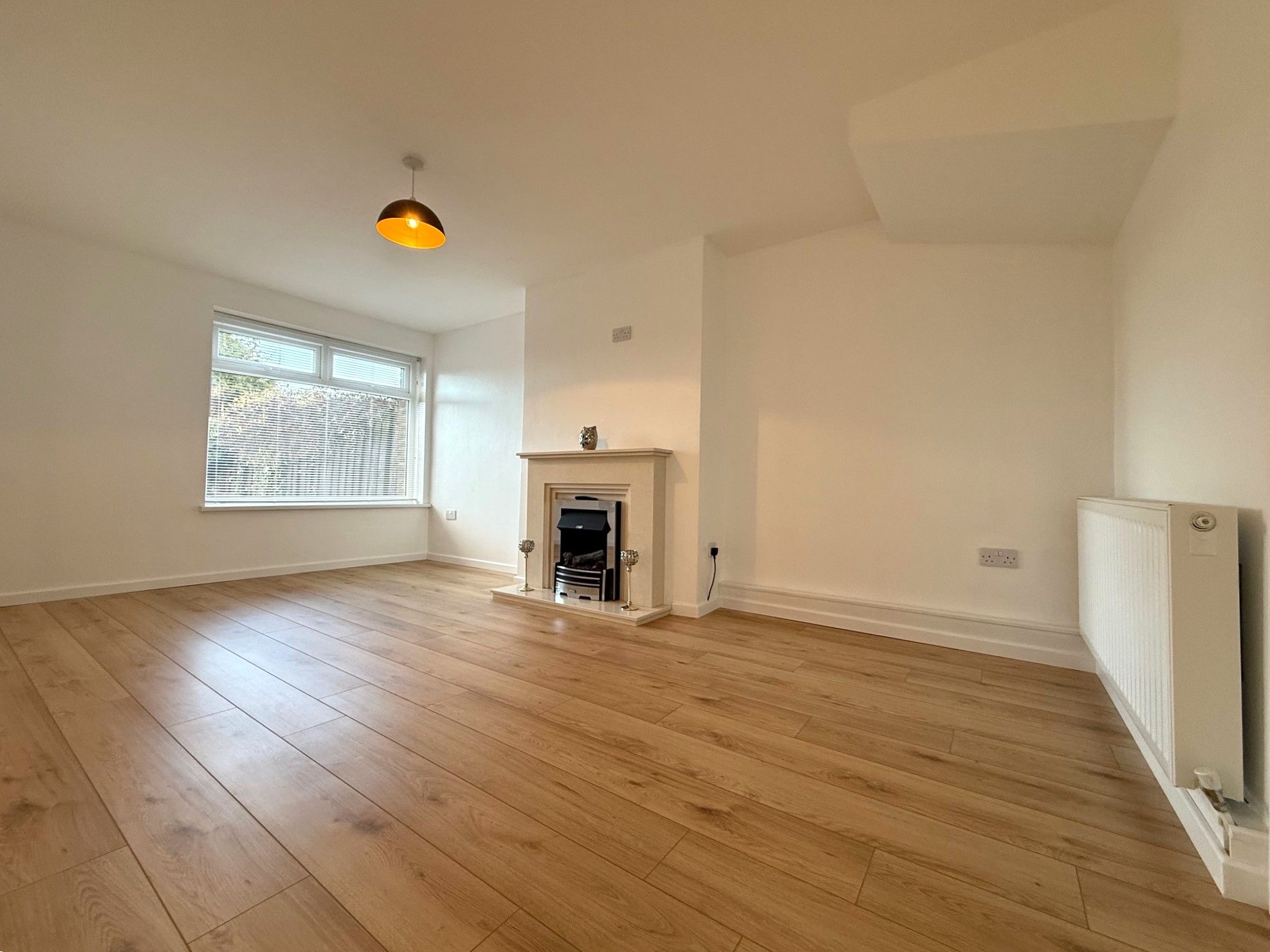 Lounge. 17'3 x 9'10 (5.26m x 3.01m) New double glazed window to rear, laminate flooring, fireplace with electric fire and radiator.