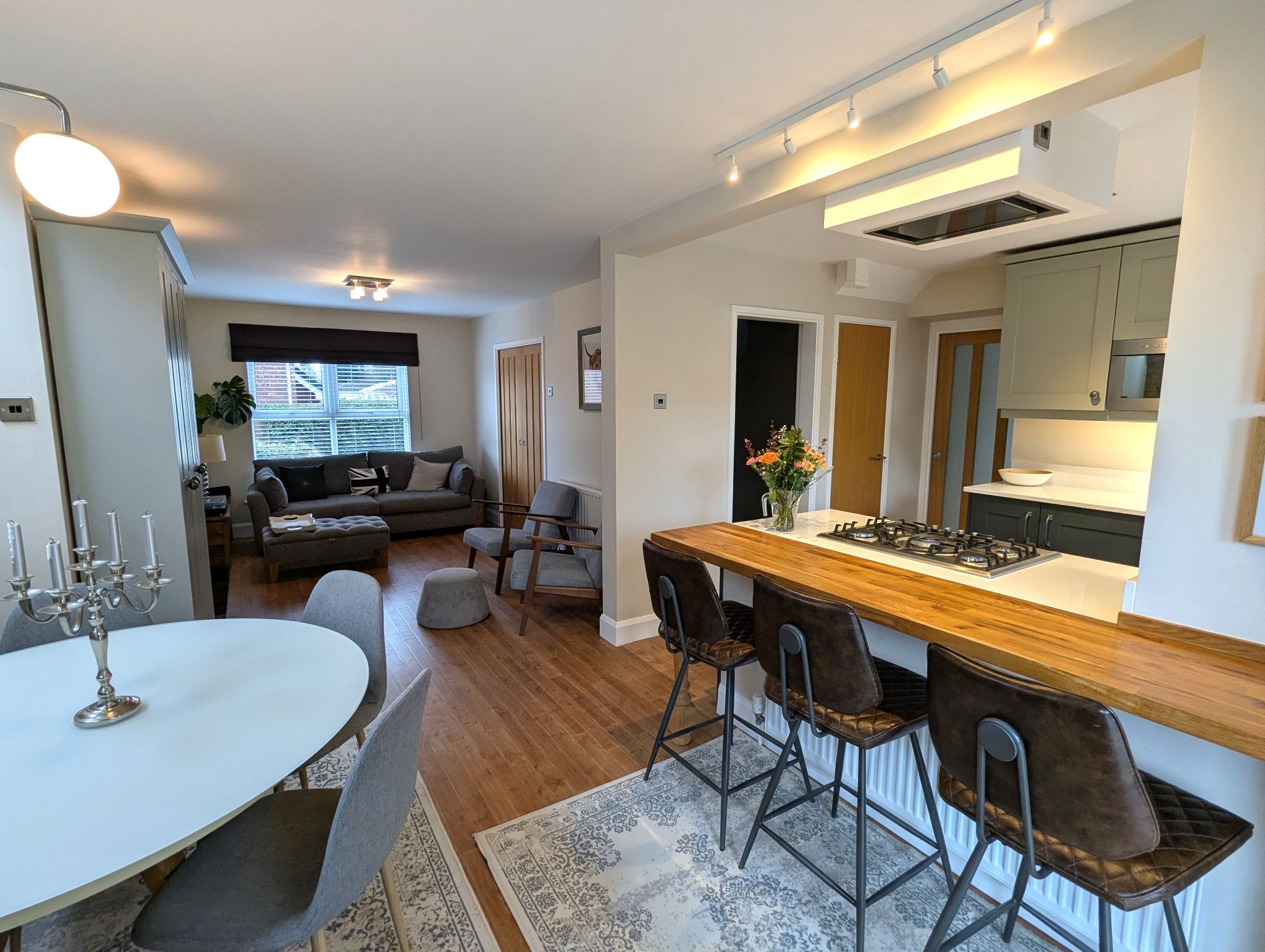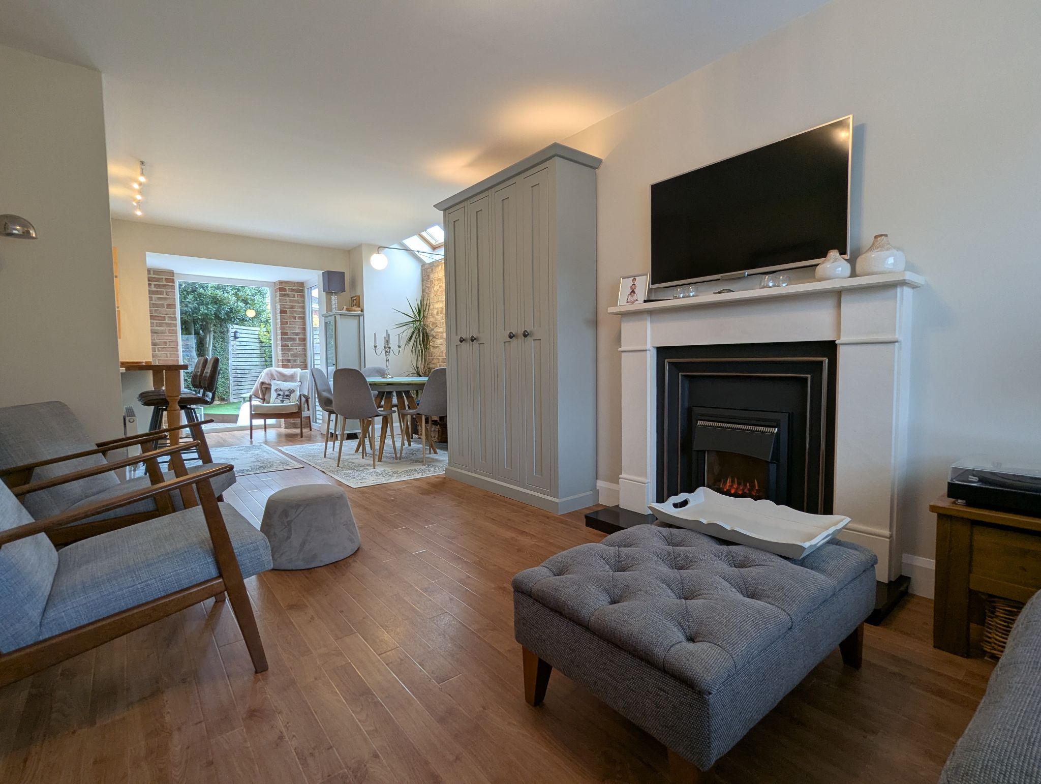 Step inside and you’ll appreciate how the layout supports both togetherness and privacy. We are first greeted with a beautifully presented entrance hall with panelled wall features along with a glazed panel feature and carpet runner to the stairs and sliding internal doors giving you options to go through to a private lounge or separate living room with an open plan aspect for the kitchen/diner. The former garage has been converted into a welcoming extended lounge which features a gas fire for cosy and intimate evenings, however if you like a more social setting, go through to the living room which also features a gas fire and offers an ample open plan dwelling with an extended dining area and kitchen, spanning 29ft x 19ft. Despite the open plan setting, each area boasts individual characters with extensions, skylights and exposed brick wall features which all add to the property's charm and appeal. It’s ideal for creating a home that adapts to your routines, with places to entertain friends, unwind with a book, or keep life organised without everything happening in one room.