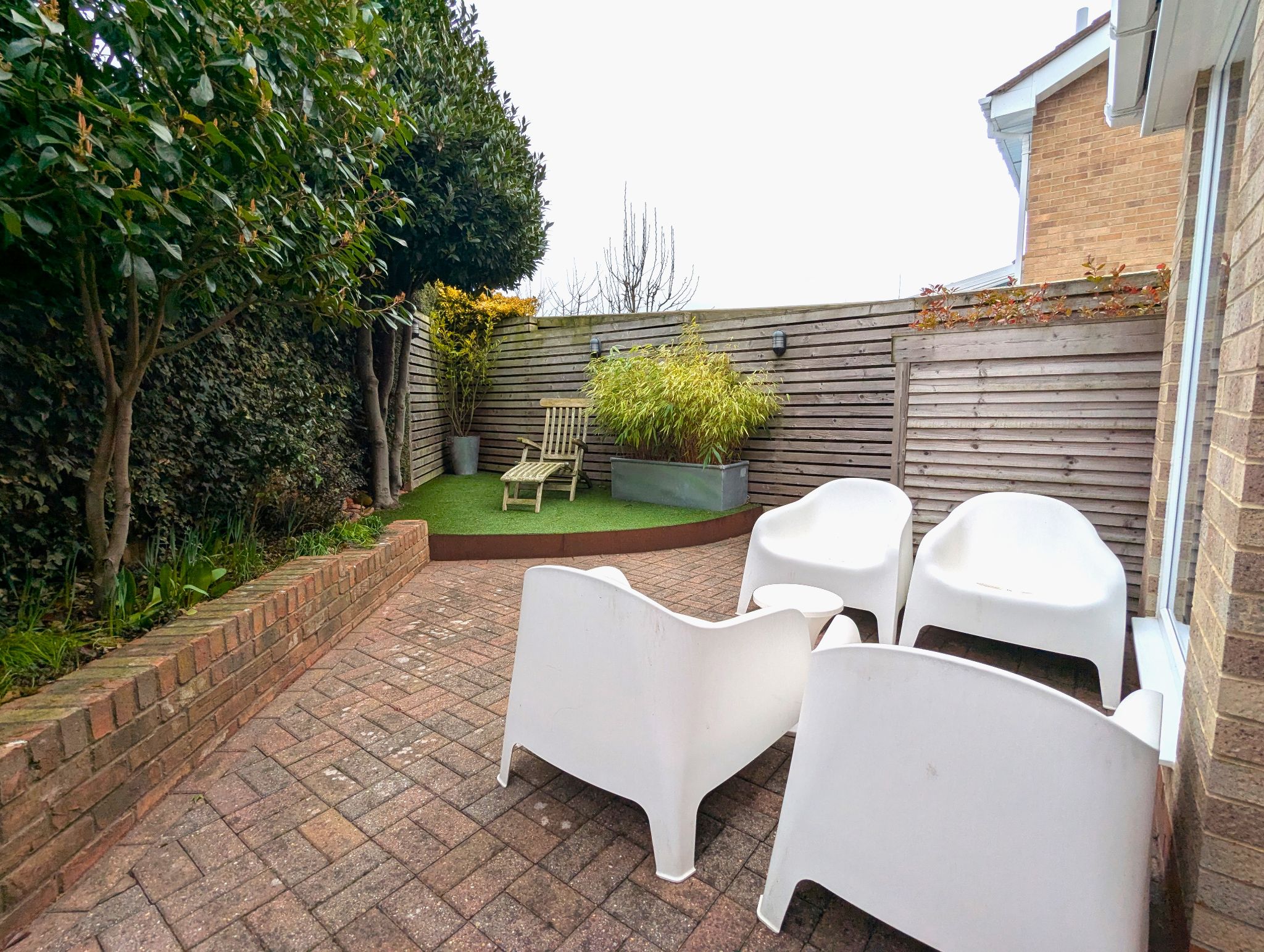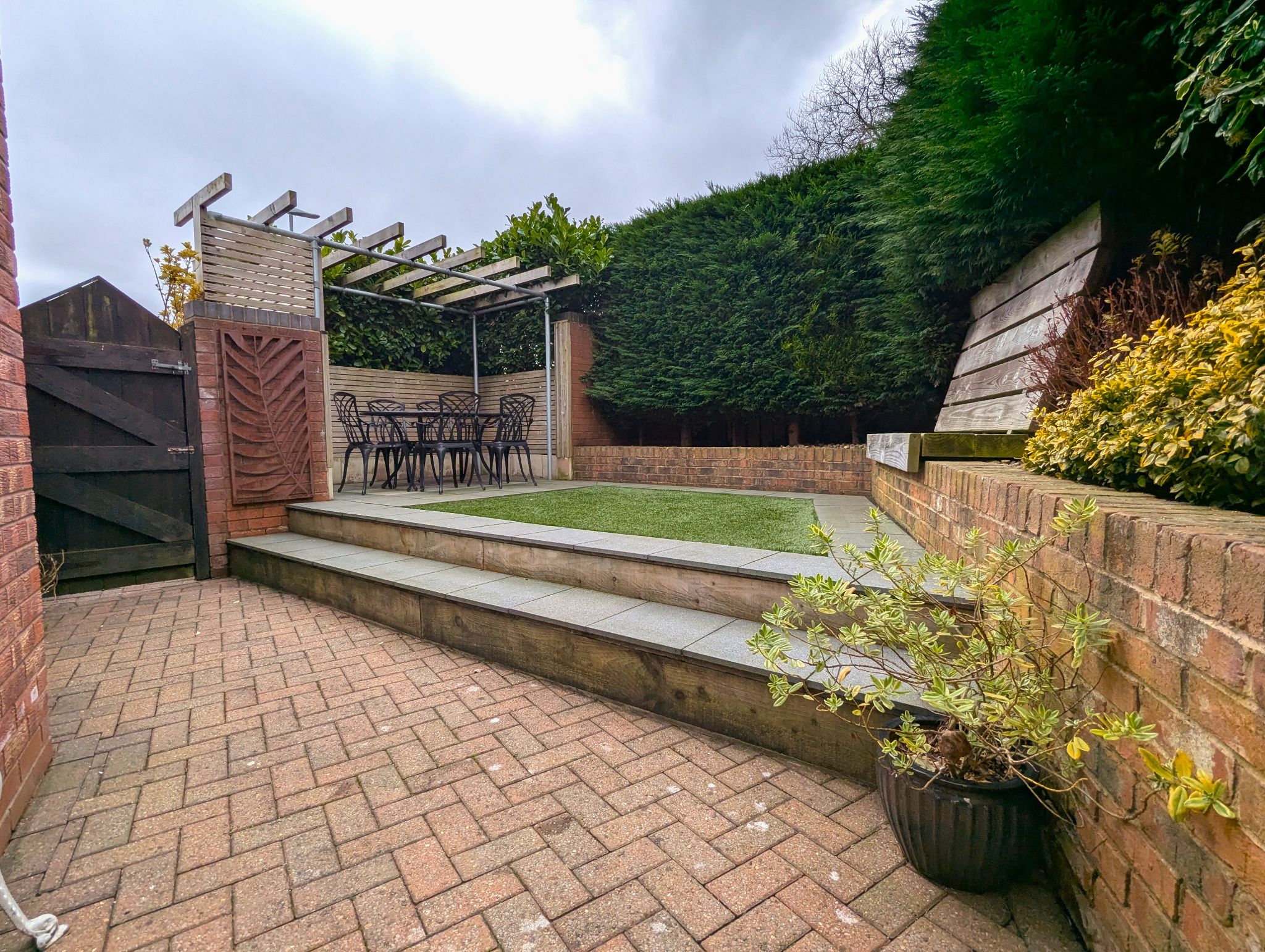 Exterior - The property has a slightly elevated and private aspect on the cul-de-sac, with a wide drive to the front able to accommodate for approximately 3 vehicles. There is a gated side access to the rear garden. Offering total privacy, the rear garden has been thoughtfully dressed to take advantage of the sun at different times of the day. The garden also offers power outlets and a Belfast sink with hot and cold running water along with a shed and secure lock up.