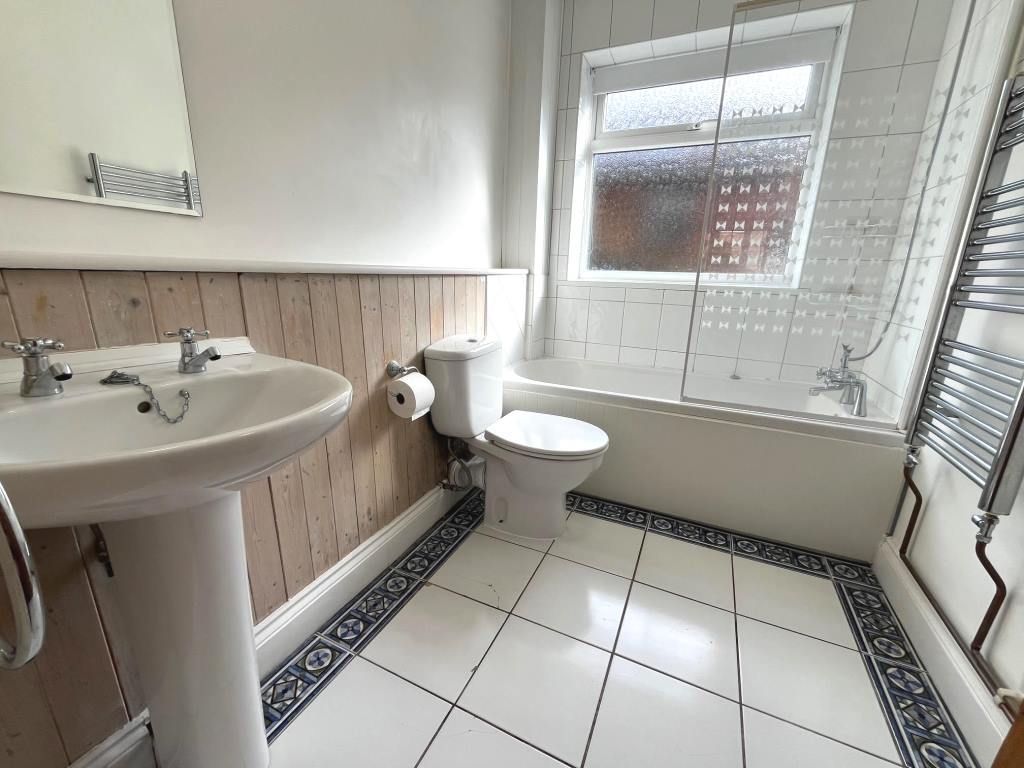 Bathroom / Wc, 8'7 x 5'10 - White suite comprising of a low level wc, pedestal wash hand basin, bidet, panelled bath with shower head off mixer taps, heated towel rail, tiled flooring and Upvc double glazed window to rear