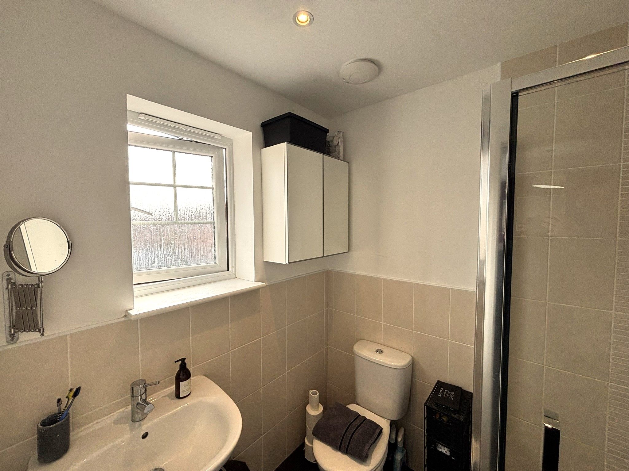 Ensuite with toilet, wash basin, shower enclosure laminte floor tiles, uPVC double glazed windows.
