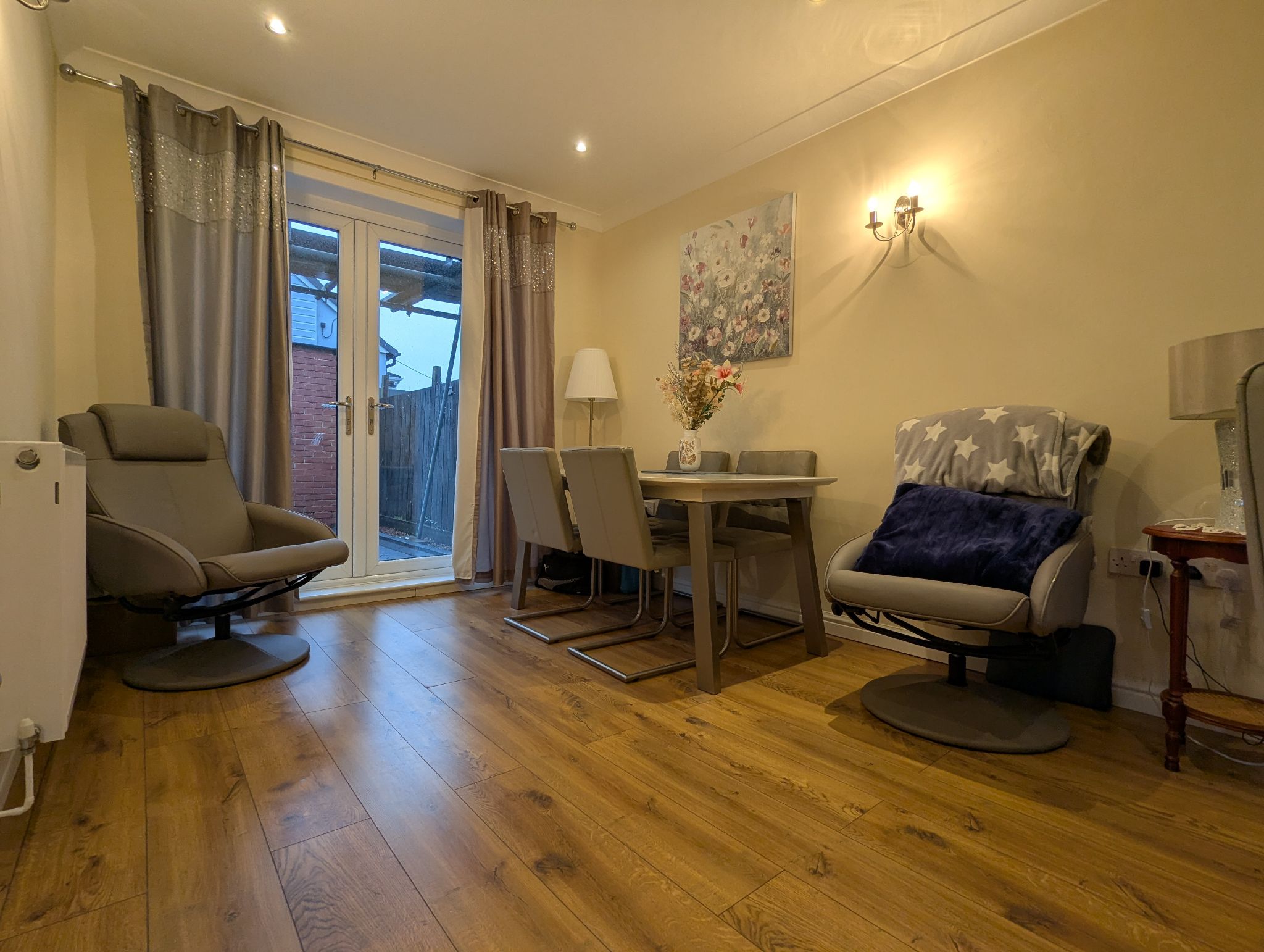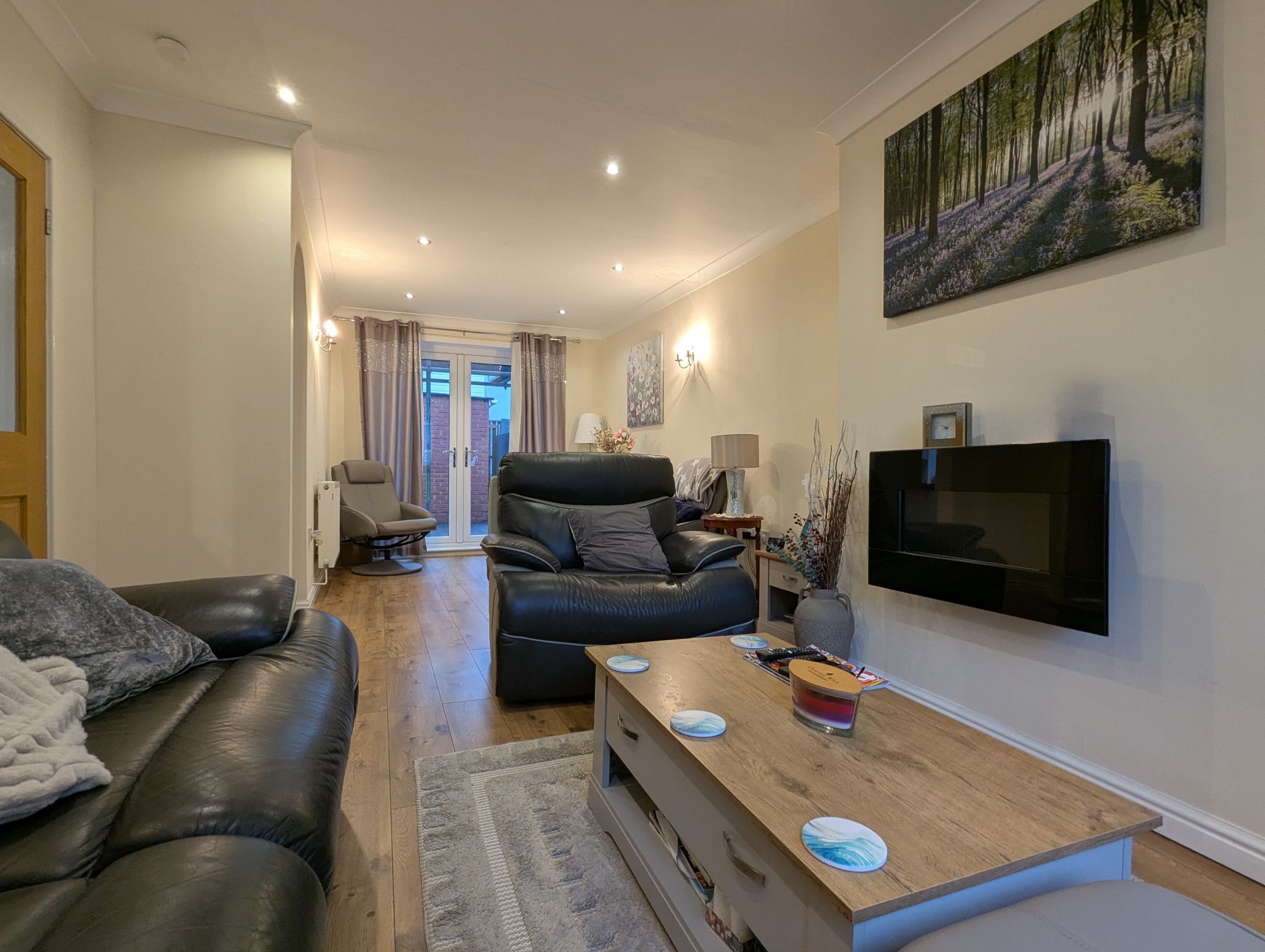 Lounge/Diner 24'6 x 9'7 closing to 9' (7.49m x 2.95m closing to 2.74m) - Spacious lounge/diner with laminate flooring throughout, front-facing uPVC double glazed window along with rear-facing uPVC double French doors to the dining area looking out onto the garden. Gas fireplace and 2 wall mounted radiators. Access to the kitchen.